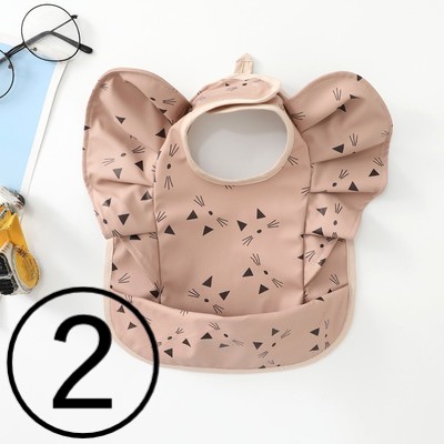 お食事エプロン9デザイン赤ちゃんベビー離乳食防水フリル女の子男の子ビブスタイポケット韓国おしゃれ可愛い半袖くま恐竜動物ネコチューリップオリーブナチュラルマジックテープ保育園ポリウレタンピンクエプロン