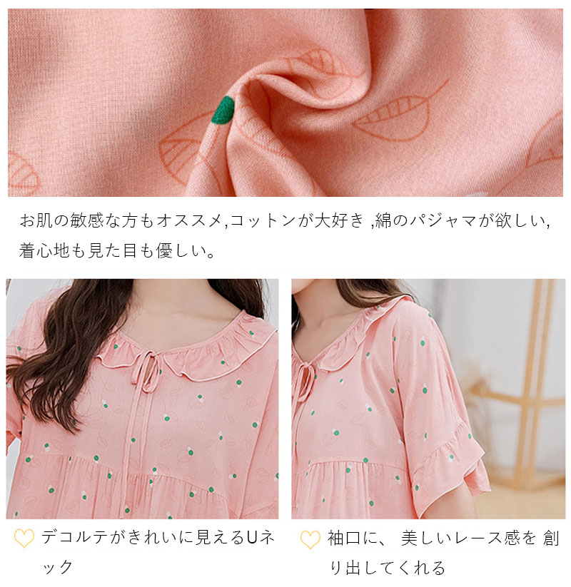 パジャマ レディース 夏 綿 半袖 ル