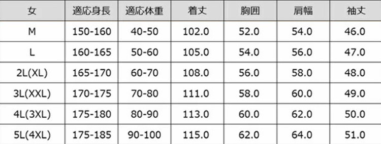 vertical-key: M L LL 3L(2XL) 4L(3XL) 5L(4XL)