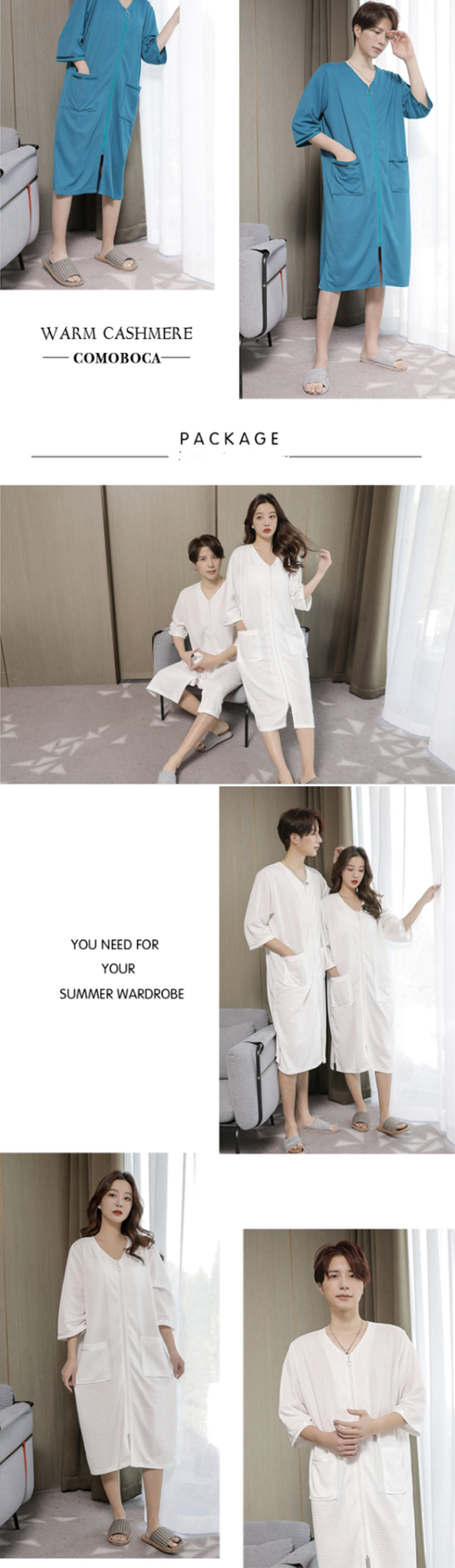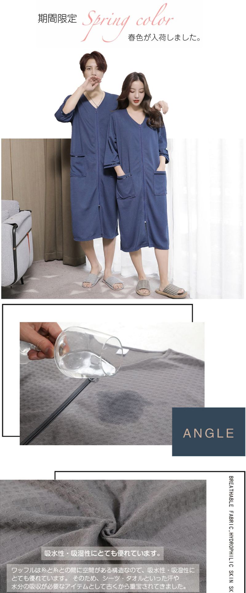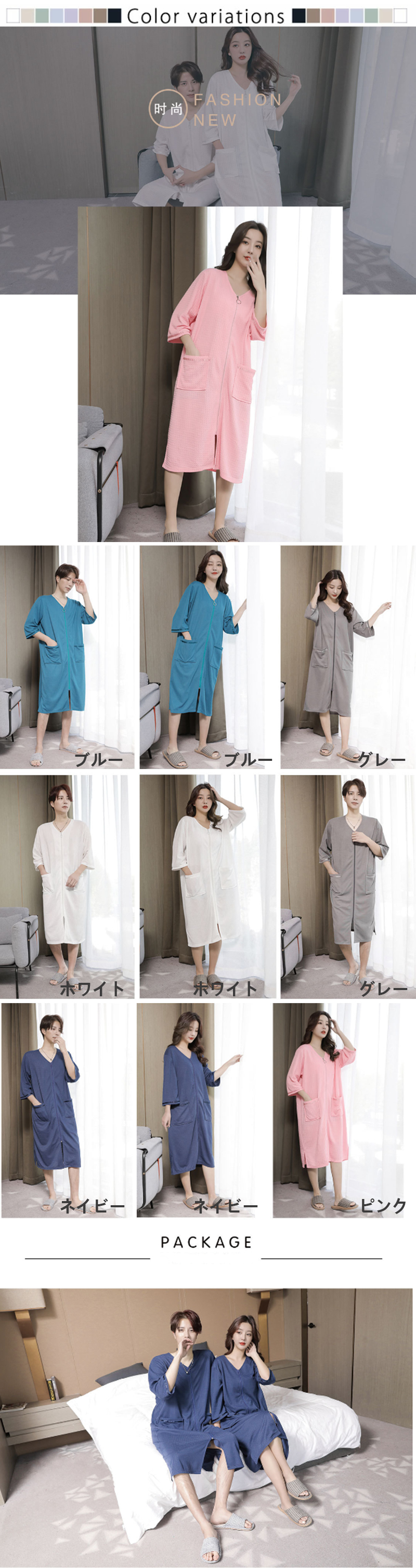 5色 バスローブ 男女兼用 膝丈 ワッ