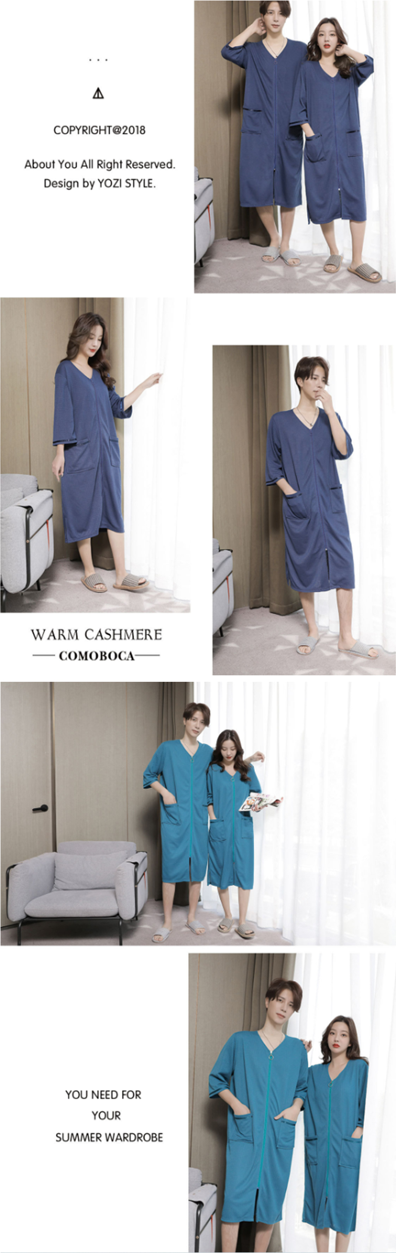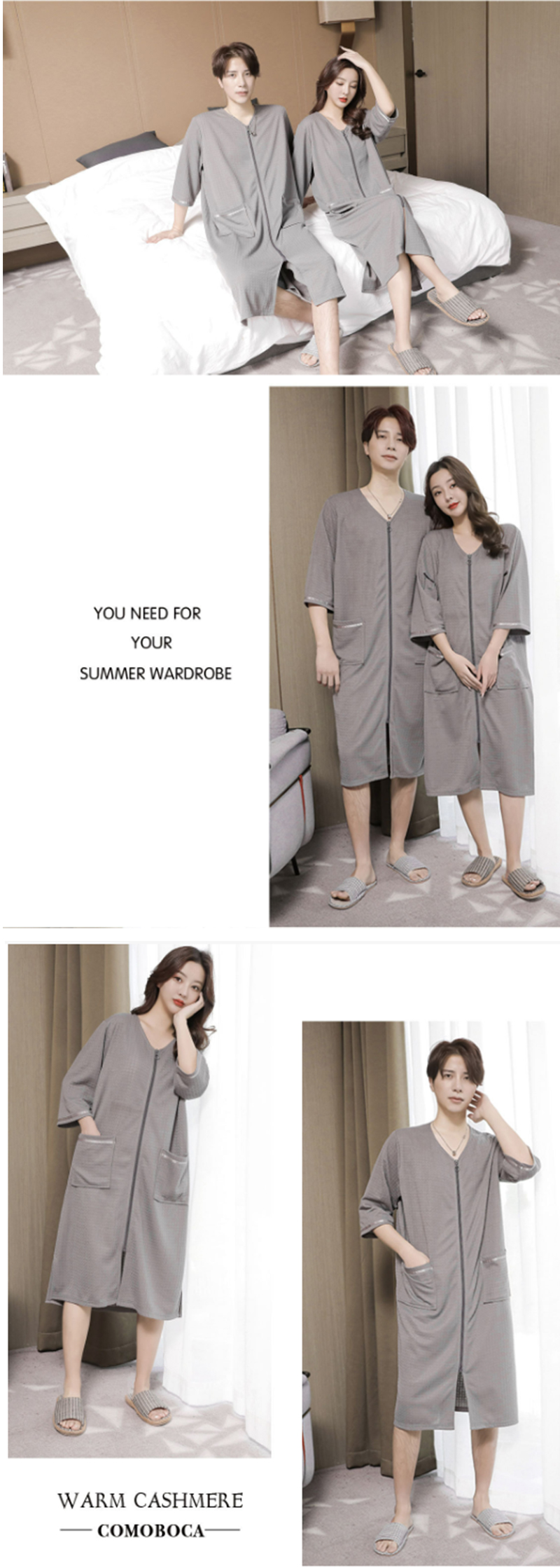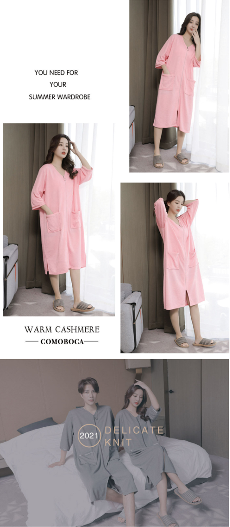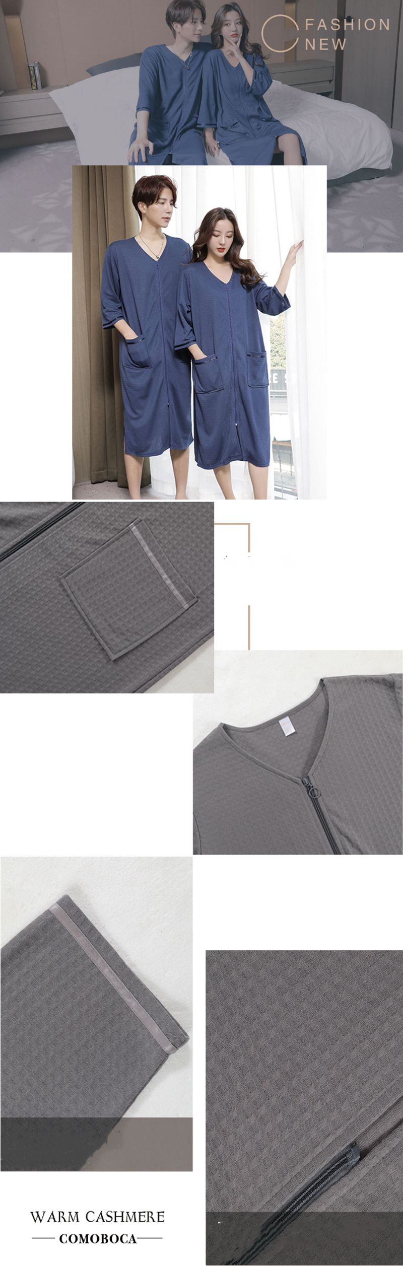 5色 バスローブ 男女兼用 膝丈 ワッ