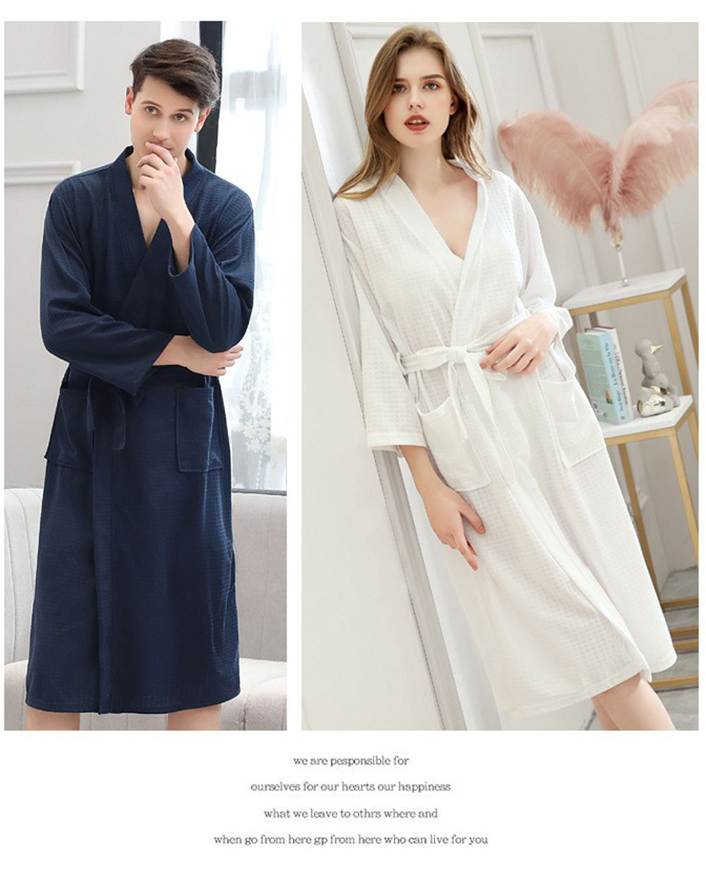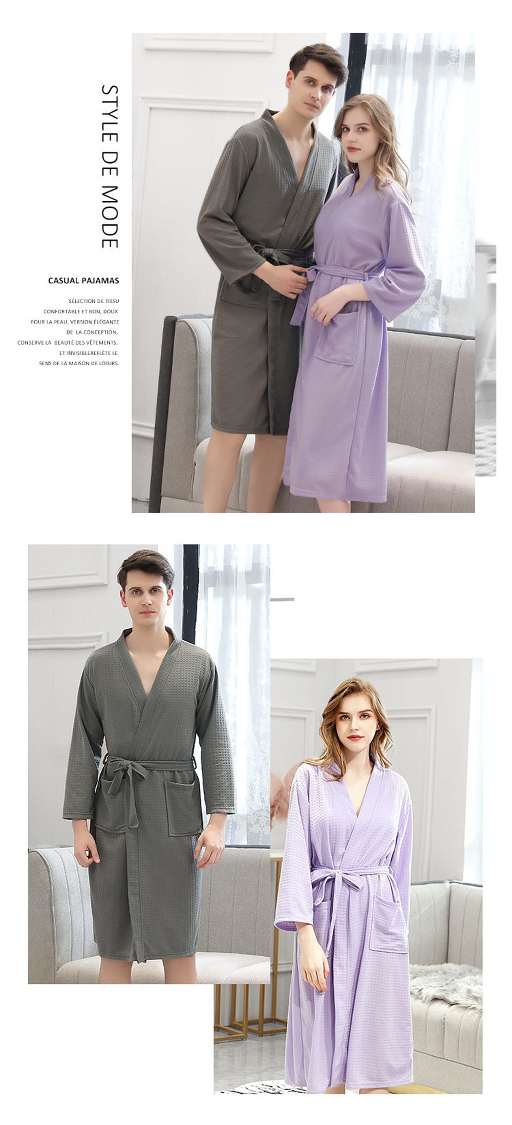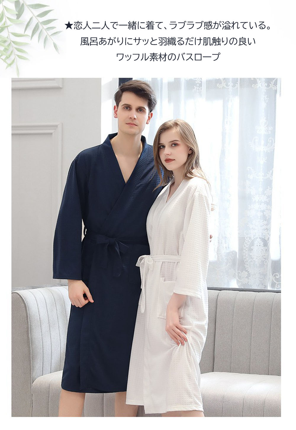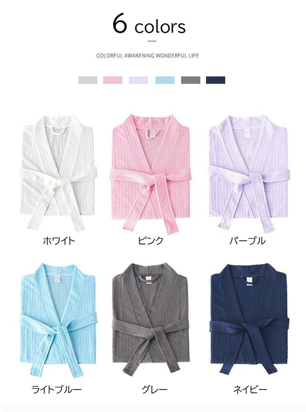 6色 バスローブ 男女兼用 膝丈 ワッ