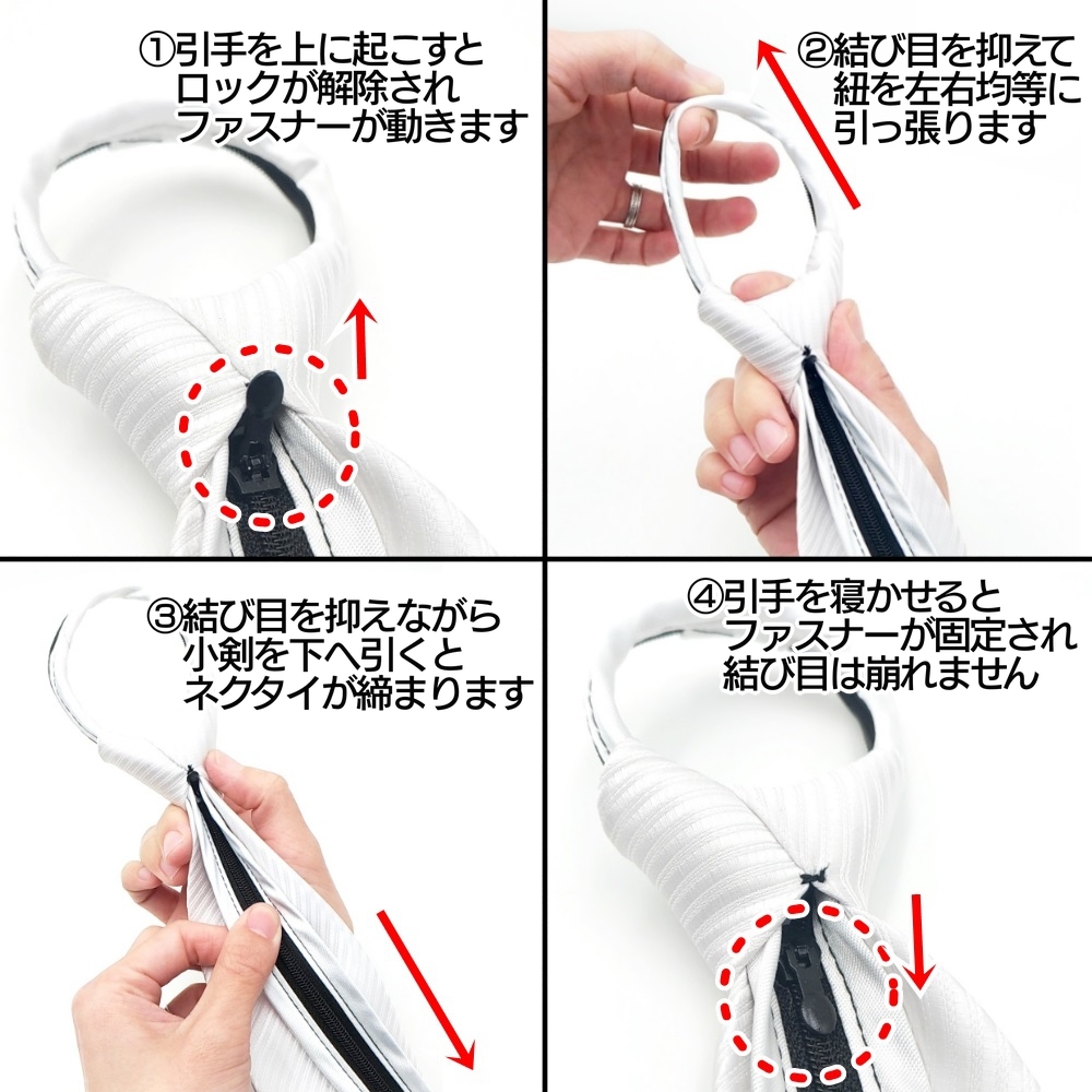 ネクタイ ワンタッチ 白 黒 2本セッ