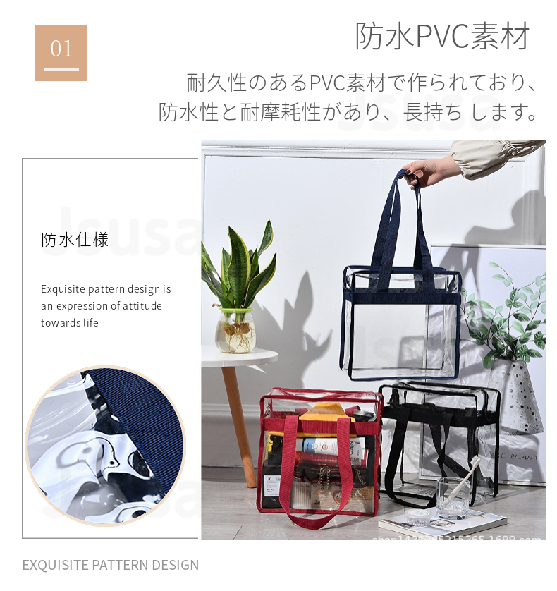 最新登録!透明防水PVC化粧ポーチ/中身が一目瞭然です!
