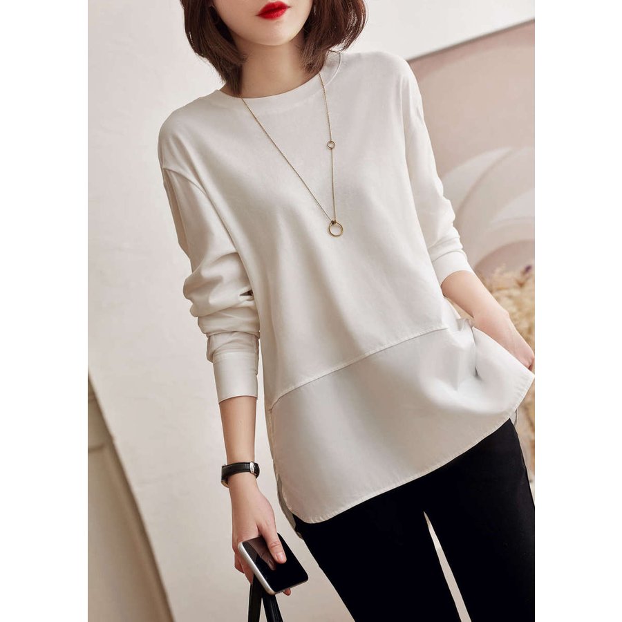 シアースリーブ ドッキングシャツ ボウタイシャツブラウス