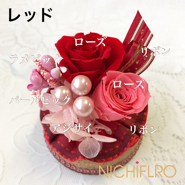 【日本製ハンドメイドのプリザーブドフラワーアレンジ】生花に特殊な染料で加工を施し、見た目も触り心地も生花のようにみずみずしいプリザーブドフラワーのアレンジです。面倒な水替えや水やりは不要で、花粉の心配もないので、プレゼントにも最適です。