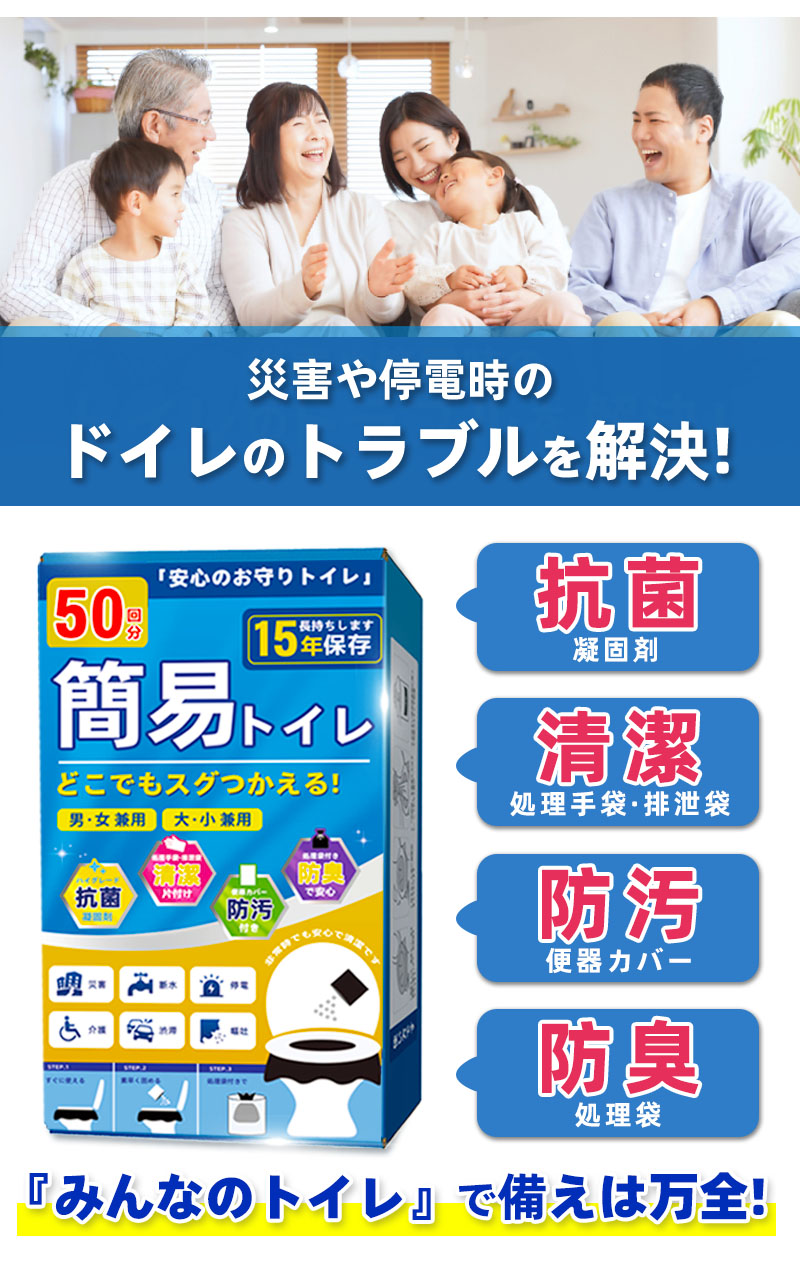 ◆◆【15年長期保存可能!備蓄で安心!】簡易トイレは15年間の長期保存が可能なのも嬉しいポイント!15年後も変わらない吸収力で非常時も困りません。簡易トイレ、携帯トイレ、災害用トイレ、仮設トイレとしてご家庭はもちろん企業や自治体でも備蓄しておくと安心です。