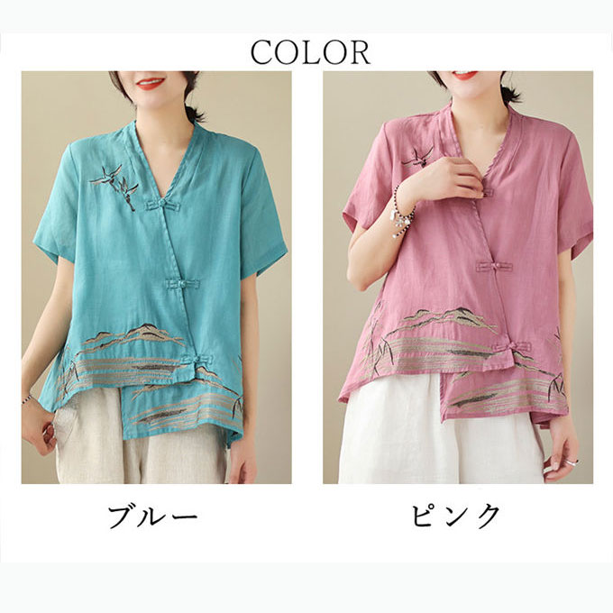 シャツブラウス レディース 立ち襟 斜