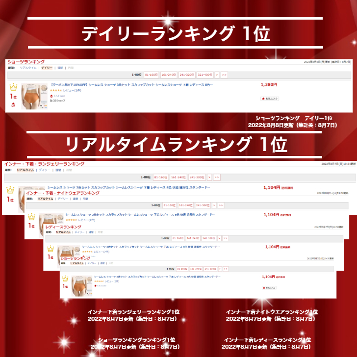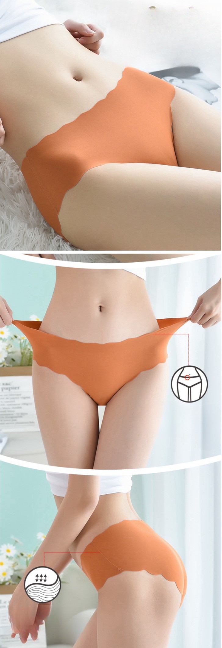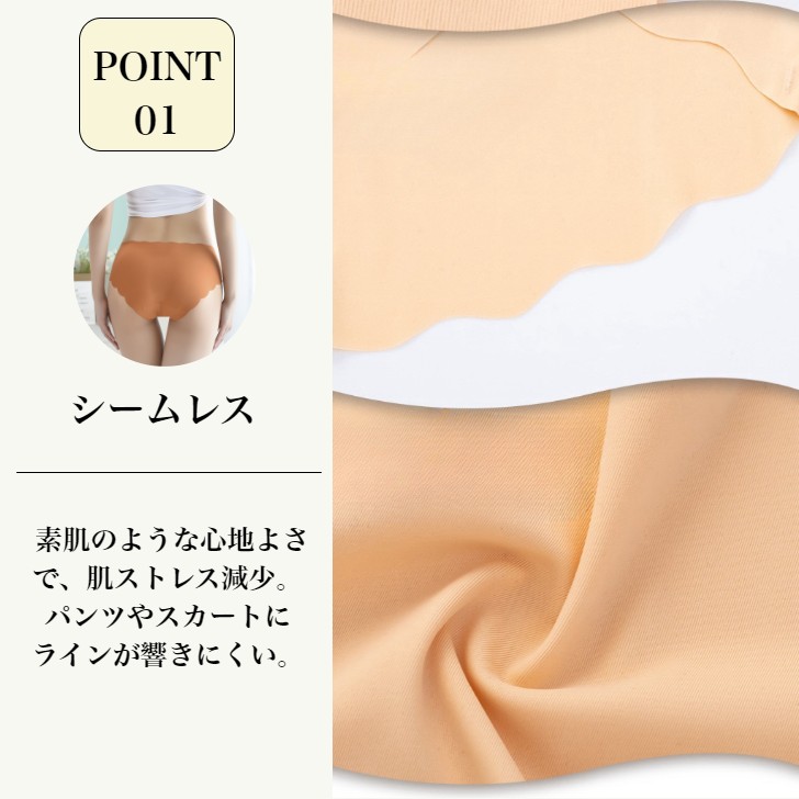 【縫い目なし・無縫製】シームレスパンツの最大特徴は縫い糸を全く使わず、接着だけで仕上げる事で縫い糸による肌への負担を軽減します。ショーツセットはのびのびフィットしてストレスゼロ。ウェストと足グリはノーゴムデザイン、なめらかなフリーカット素材を使用し、跡が付きにくい。