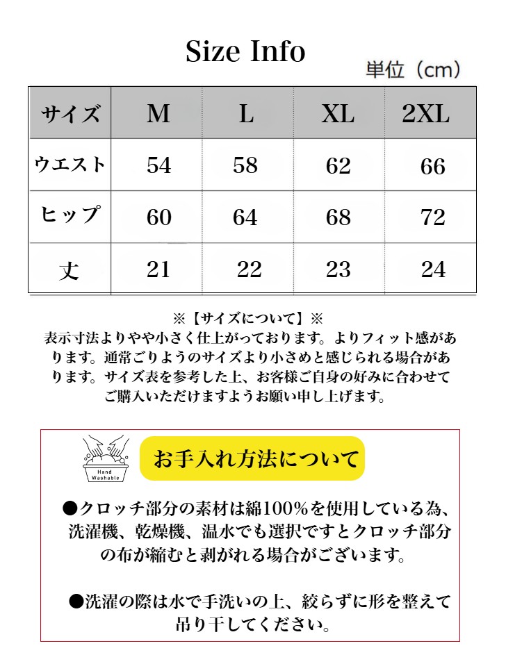 2XLウェスト66cm ヒップ72cm 着丈24cm原産国 中国その他商品説明 【【通気性・伸縮性抜群】通気性が良くてさらさらな生地は汗をかくオールシーズンにぴったりです。