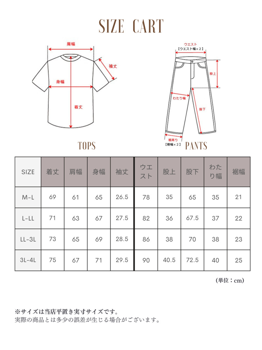(着丈)M-L:69cm / L-LL:71cm / LL-3L:73cm / 3L-4L:75cm