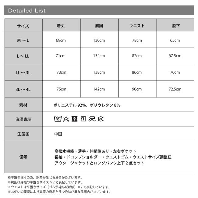 アウタージャケットとロングパンツ上下2点セット注意 ※サイズはメーカー採寸になりますが、多少誤差が生じる場合がございます。