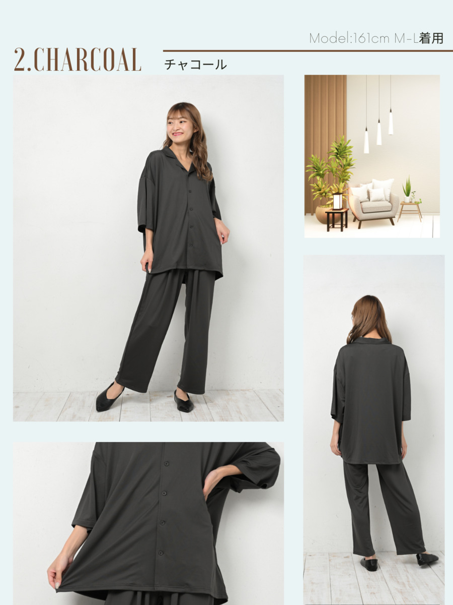 外出 できる ルーム ウェア パジャマ スーツ ジャケット オープンカラーシャツ セットアップ 男女兼用 ストレッチ オープンカラーシャツ メンズ レディース フロントボタン