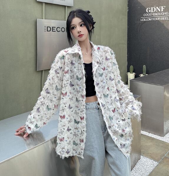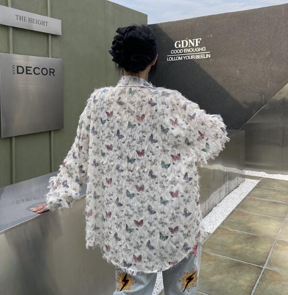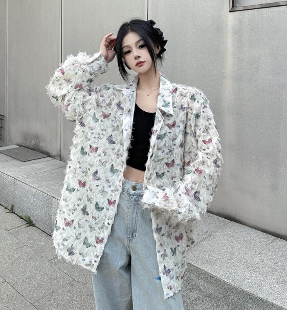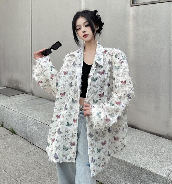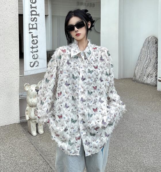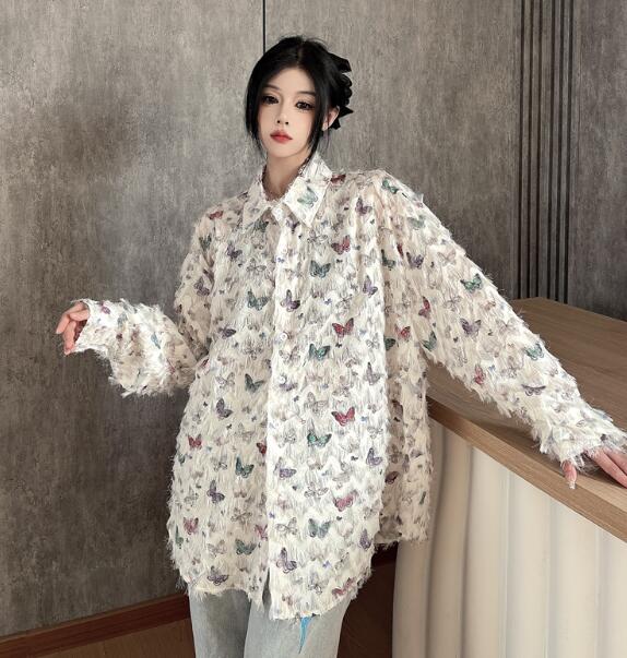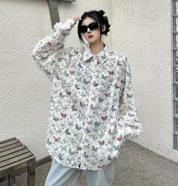 レトロちょうちょ長袖トップスシャツブラ