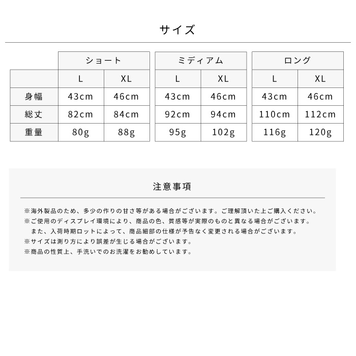 vertical-key: ショート丈ホワイト ショート丈グレー ショート丈ブラック ミディアム丈ホワイト ミディアム丈グレー ミディアム丈ブラック ロング丈ホワイト ロング丈グレー ロング丈ブラック