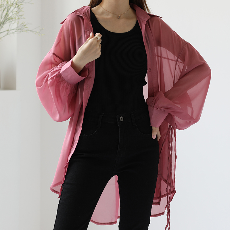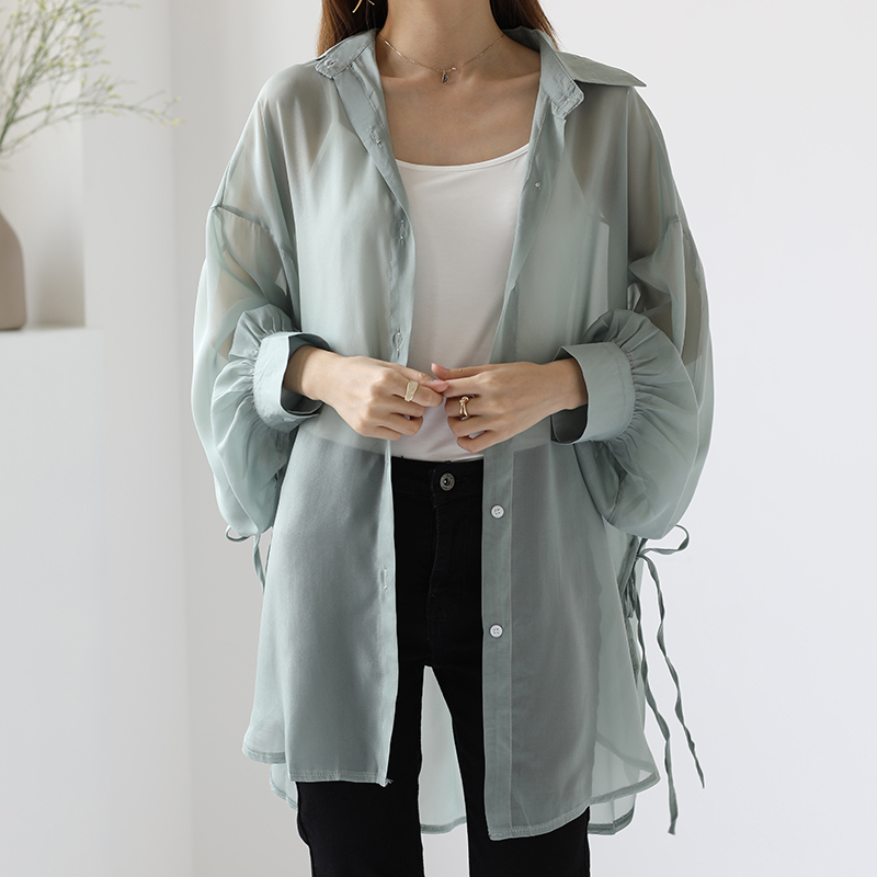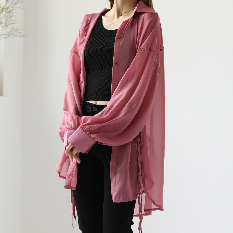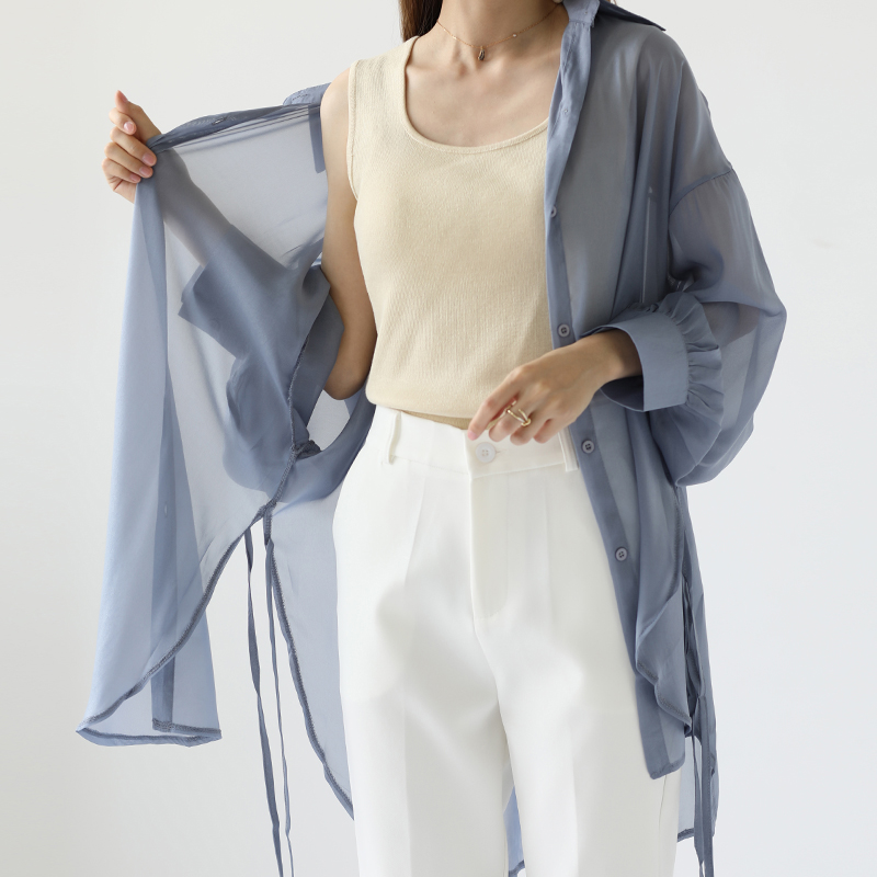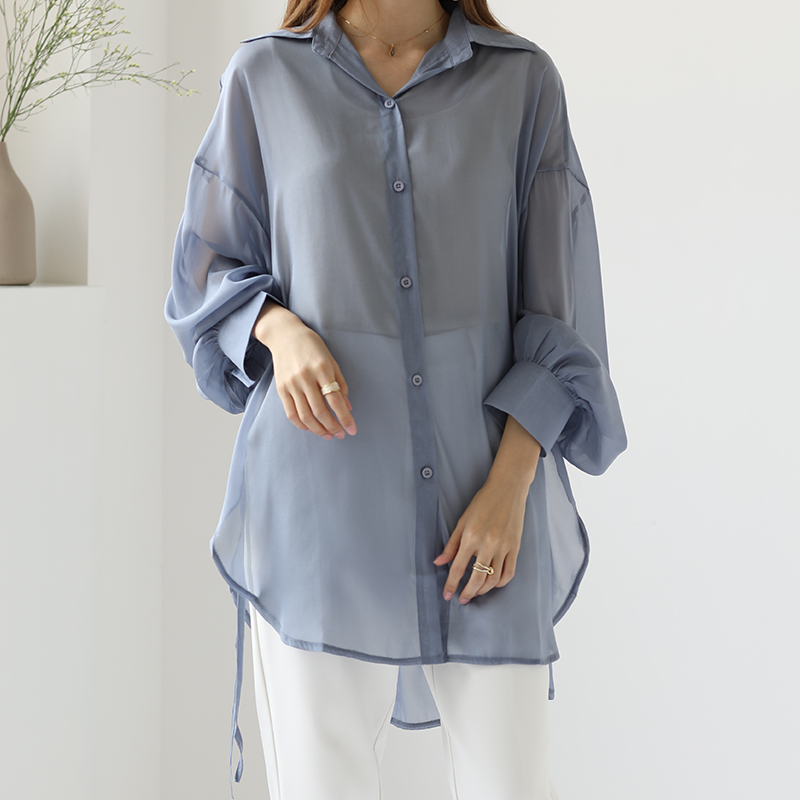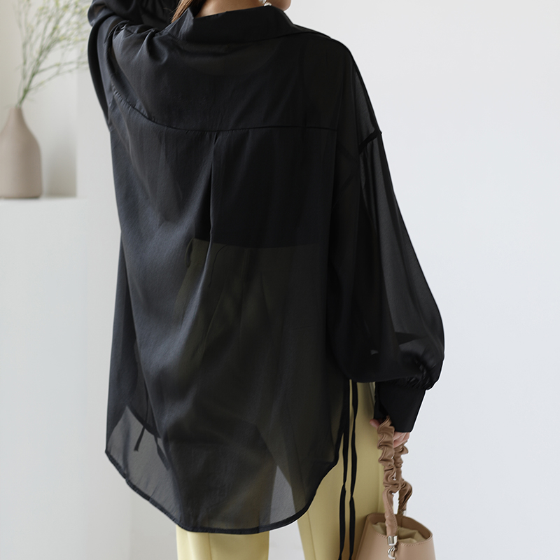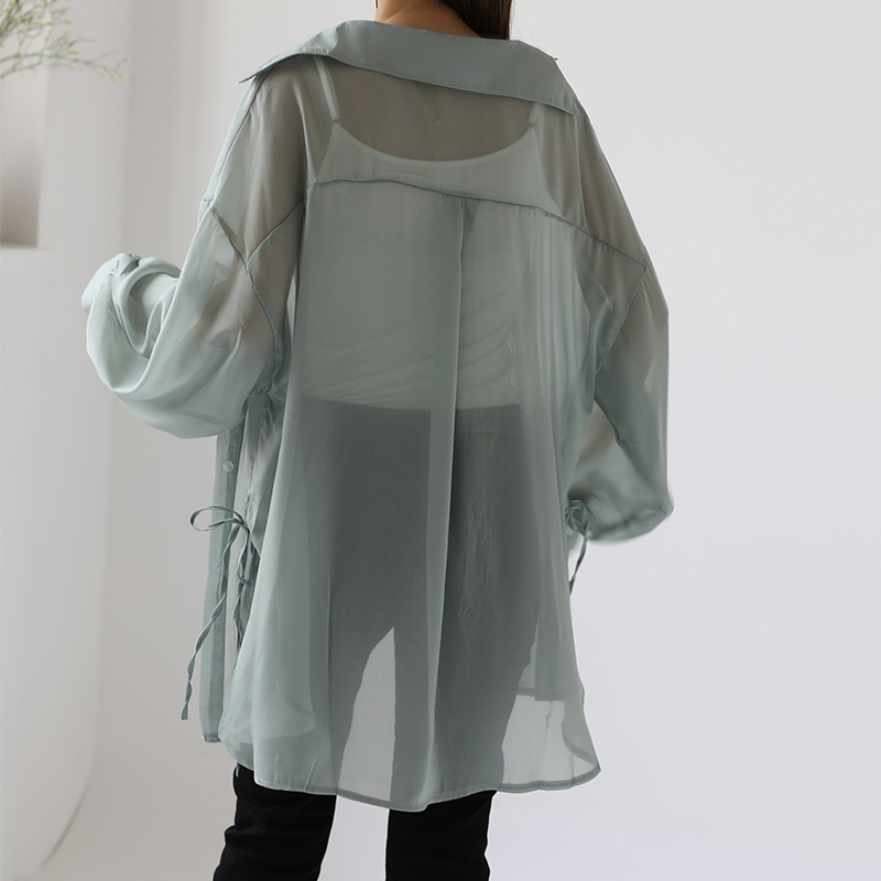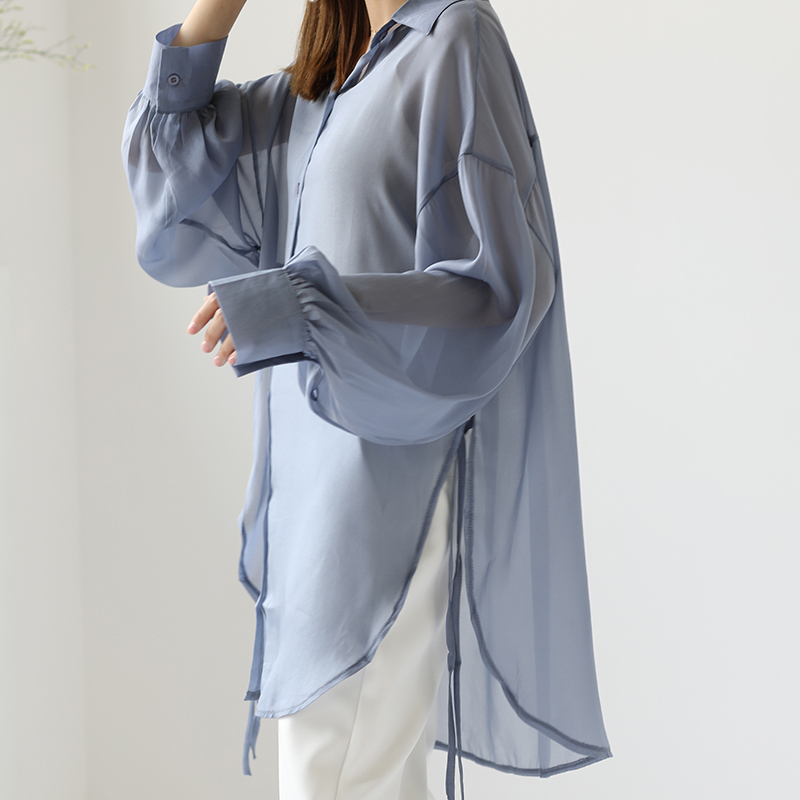 シアースリーブ ドッキングシャツ ボウタイシャツブラウス