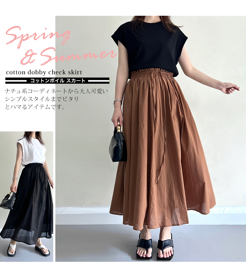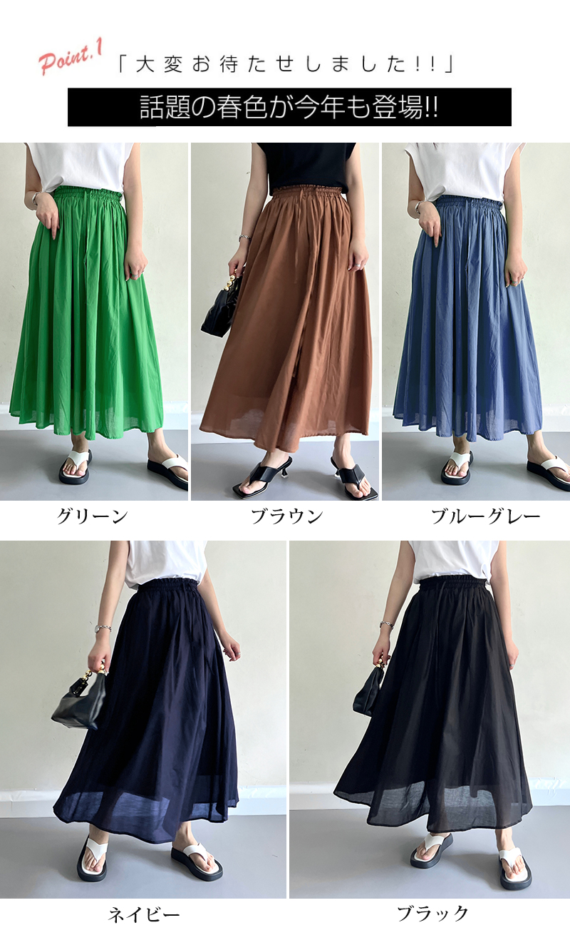 ※更新のタイミングによっては実在庫に相違が出る場合がございますが、万が一在庫切れや入荷待ちとなる場合は別途メールにてご連絡いたします。ロングスカート マキシ丈 ロング丈 レディース ゆったり シンプル カジュアル 体型カバー 柔らか 女性らしい 着心地 無地 通勤 普段着 春夏 秋 上品 シンプル 可愛い カジュアル 通勤 デイリー 日常 5色 着丈2TYPE選べる スカート 春 夏 レディース インド綿 コットン フレア ロング丈 マキシ丈 ロングスカート マキシスカート フレアスカート 綿 コットンボイル 高身長 低身長 ウエストゴム 送料無料