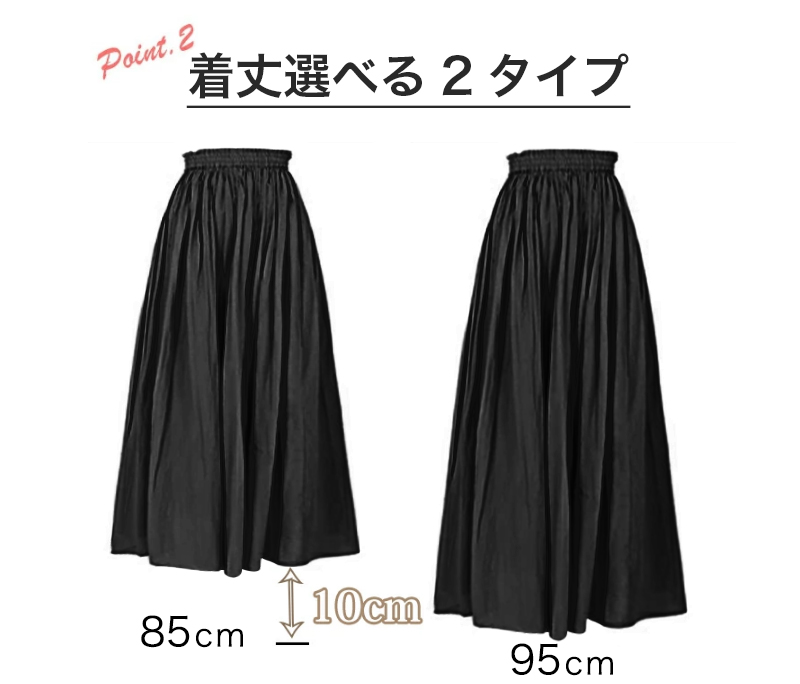 着丈2TYPE選べる フレアスカート 高身長 低身長 ウエストゴム きれいめレディースファッション ボトムス スカート