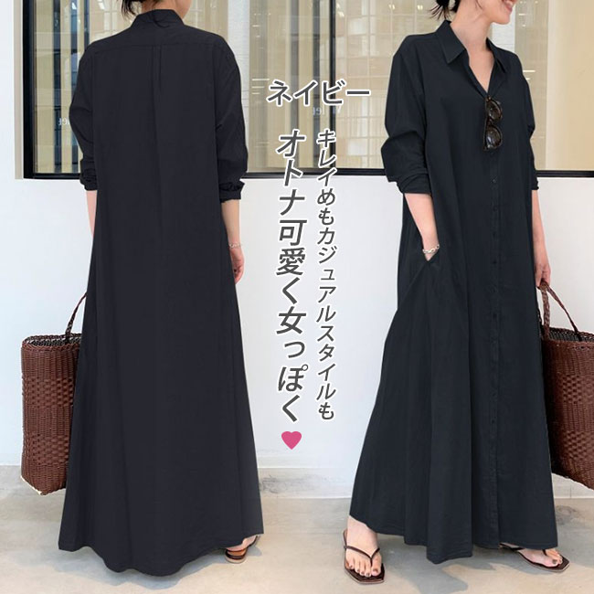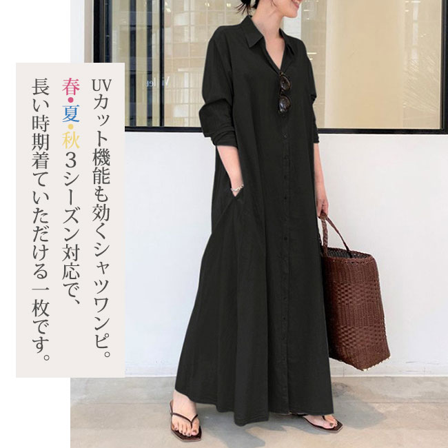 シャツ ワンピース 長袖 シャツワンピース ロング