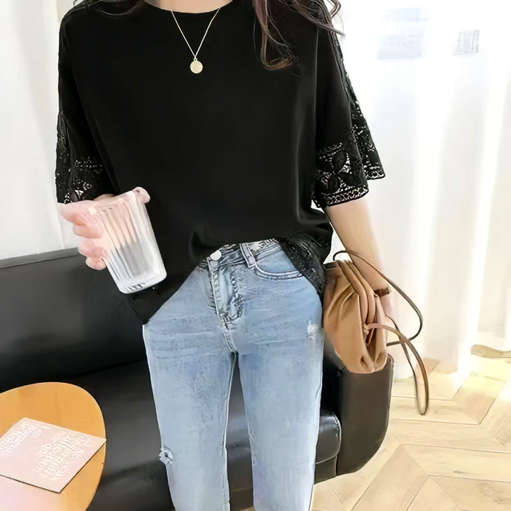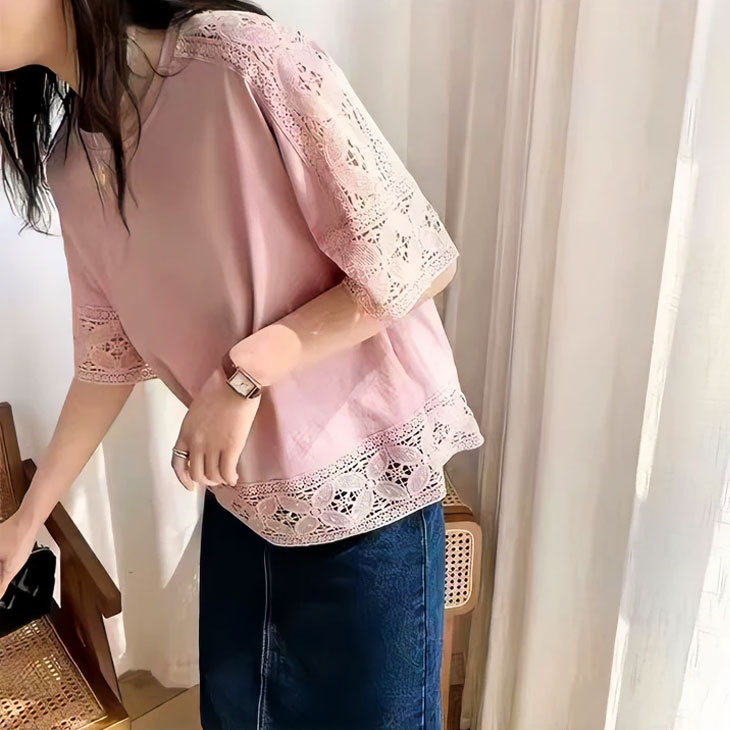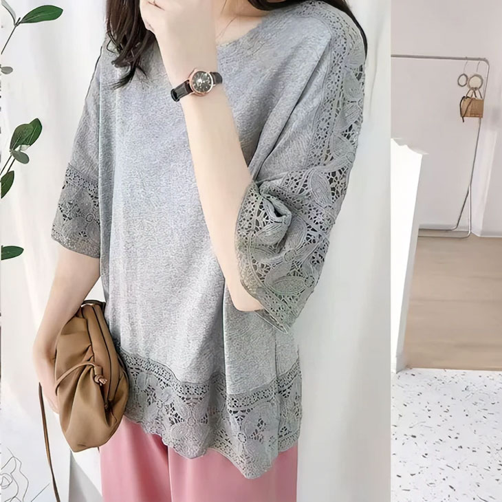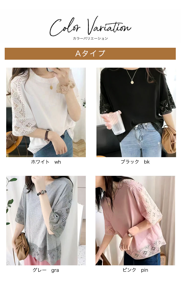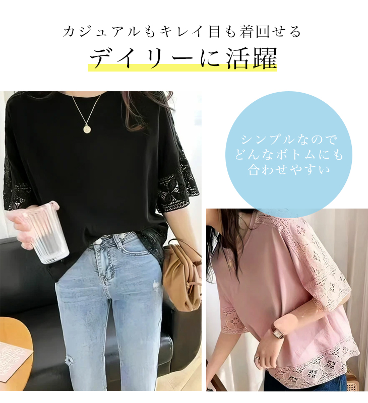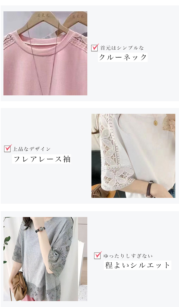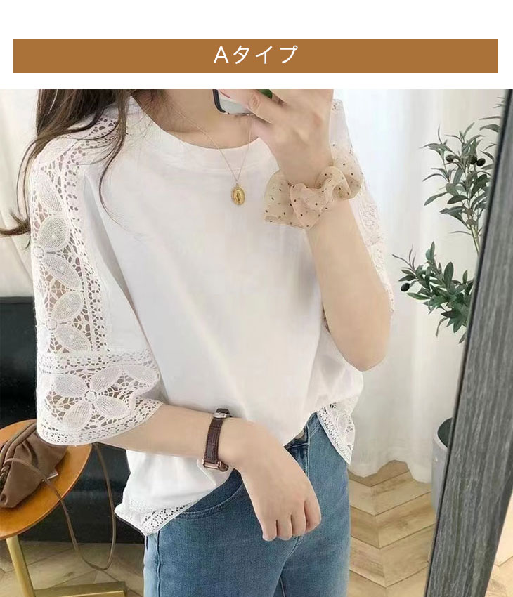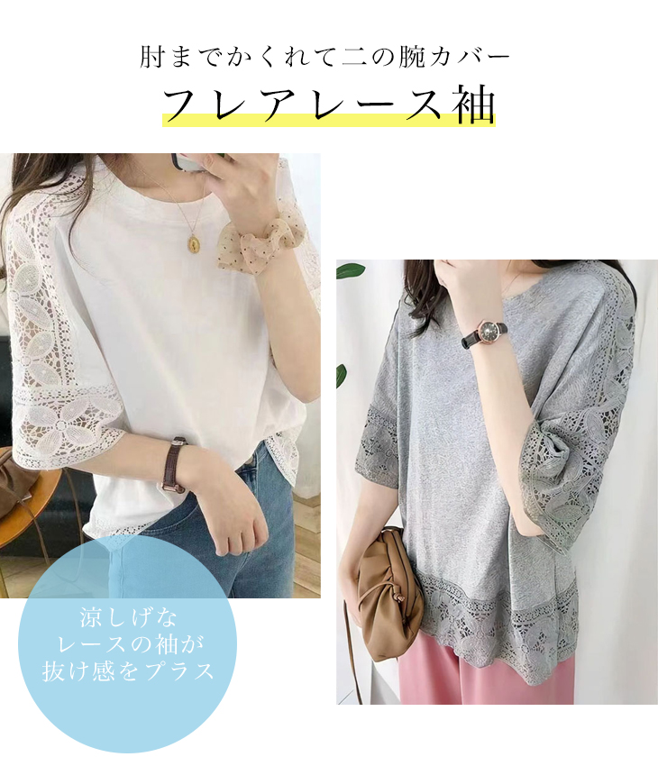 トップス 刺繍 レース カットソー T