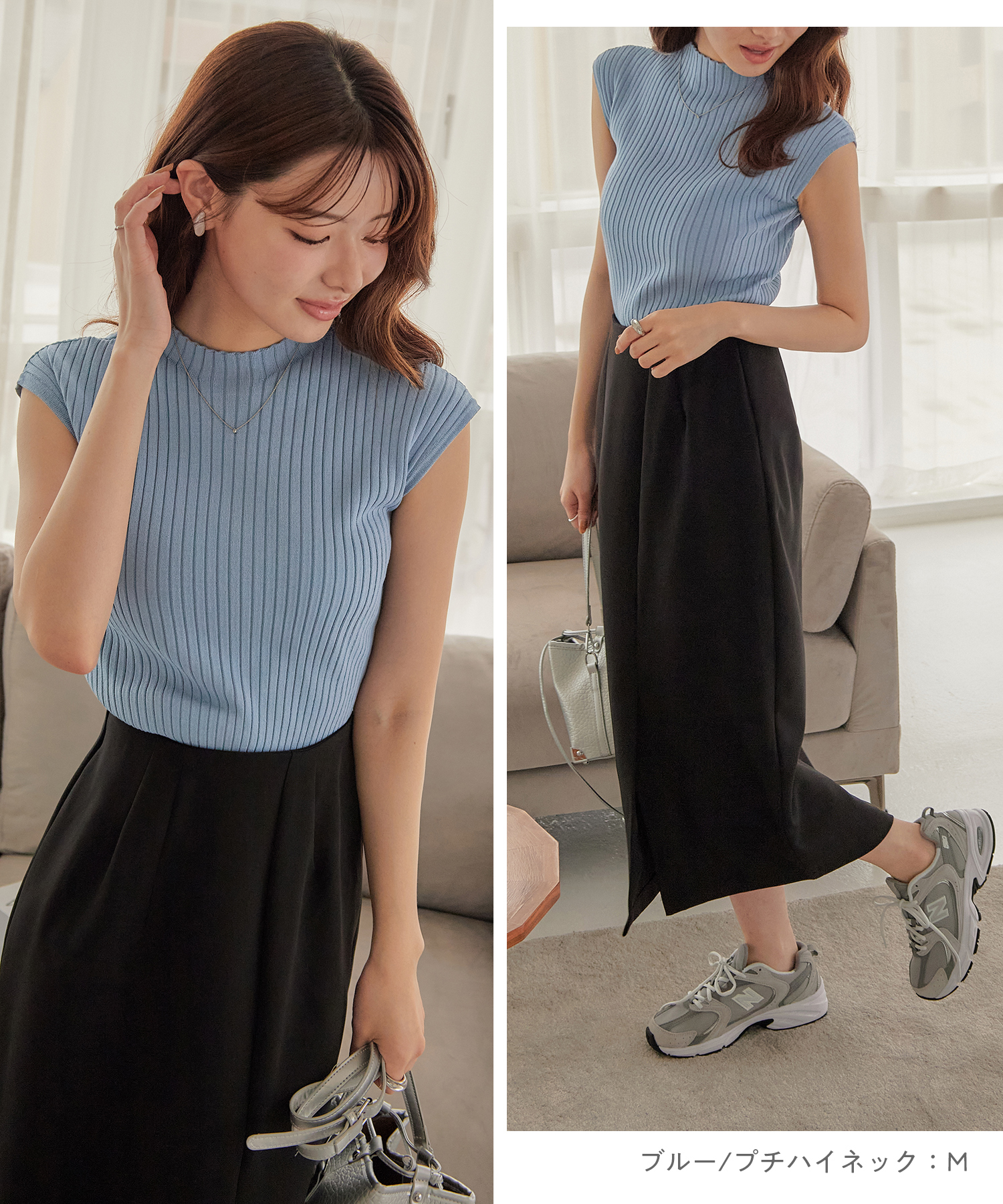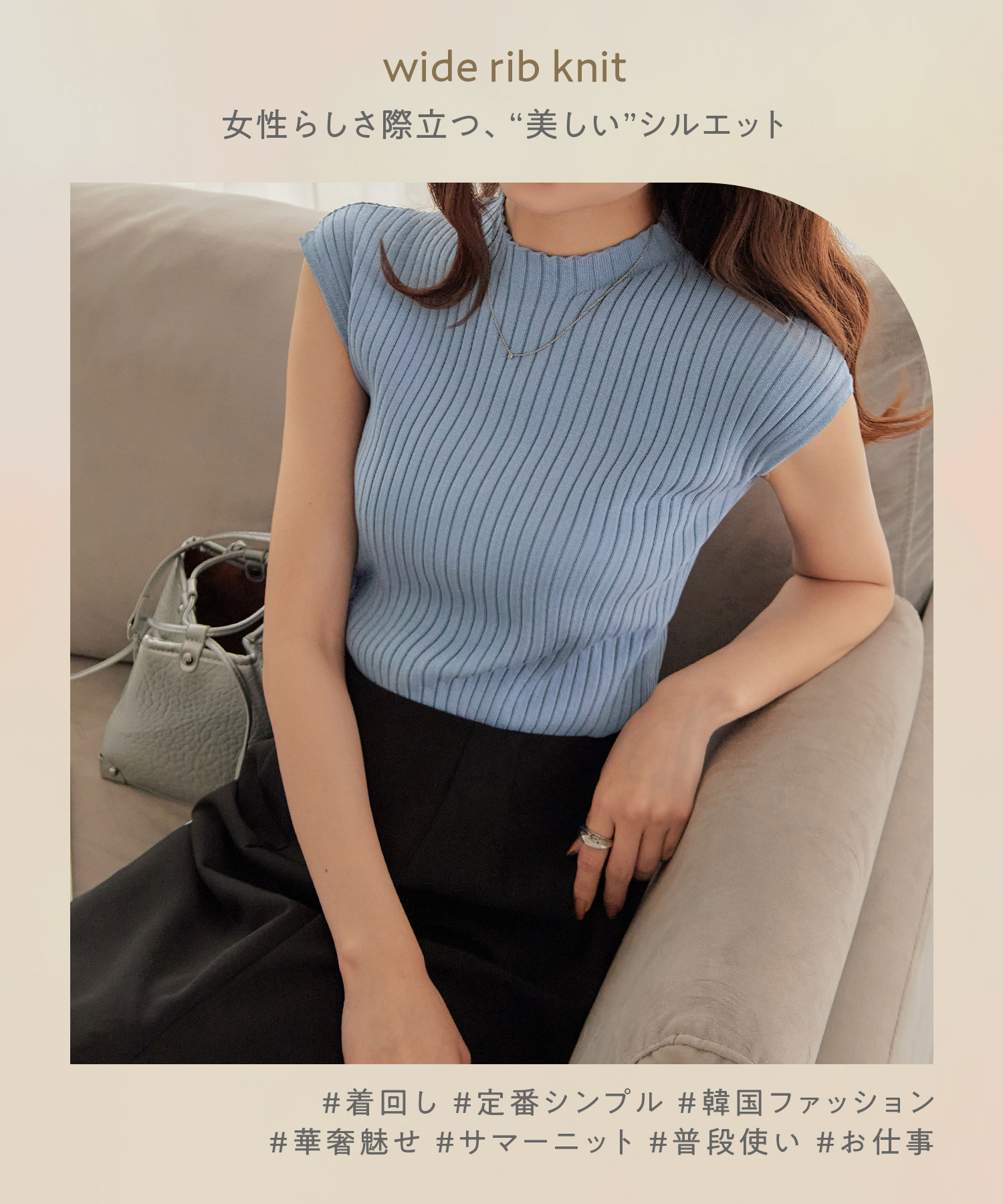 フレンチスリーブ ニット リブニット