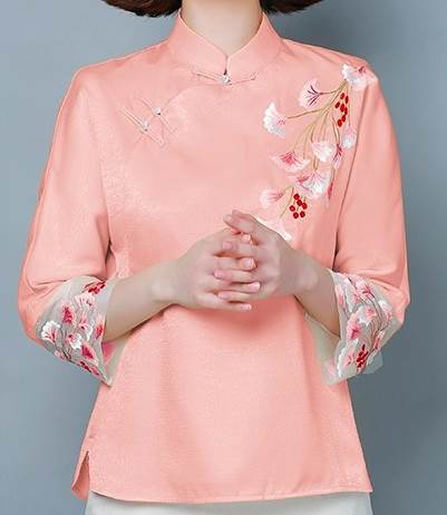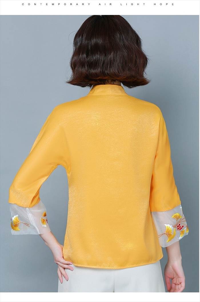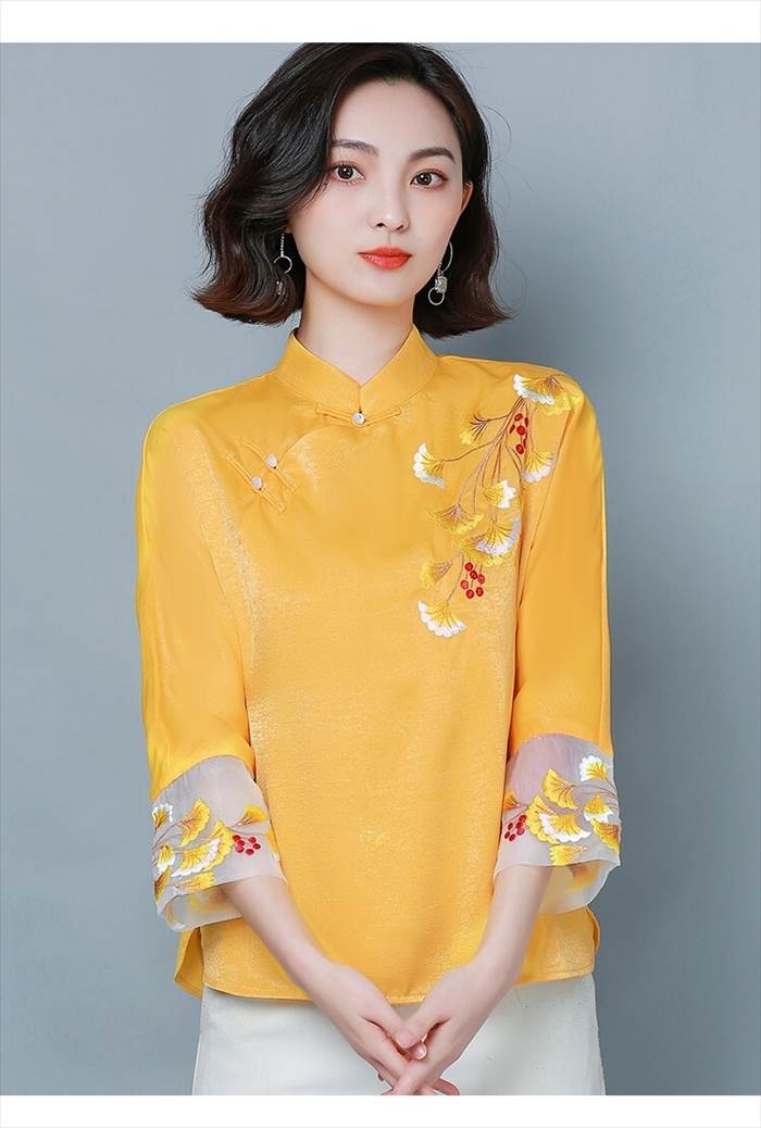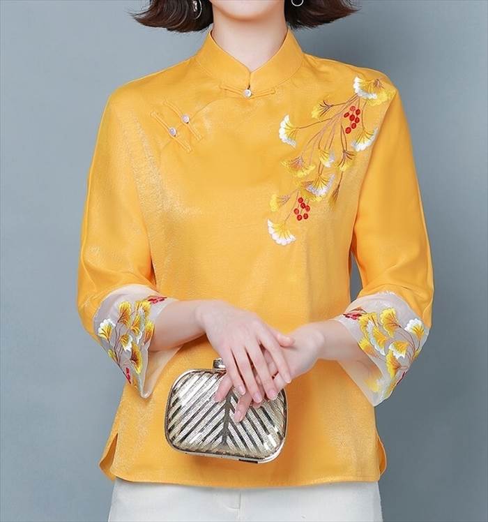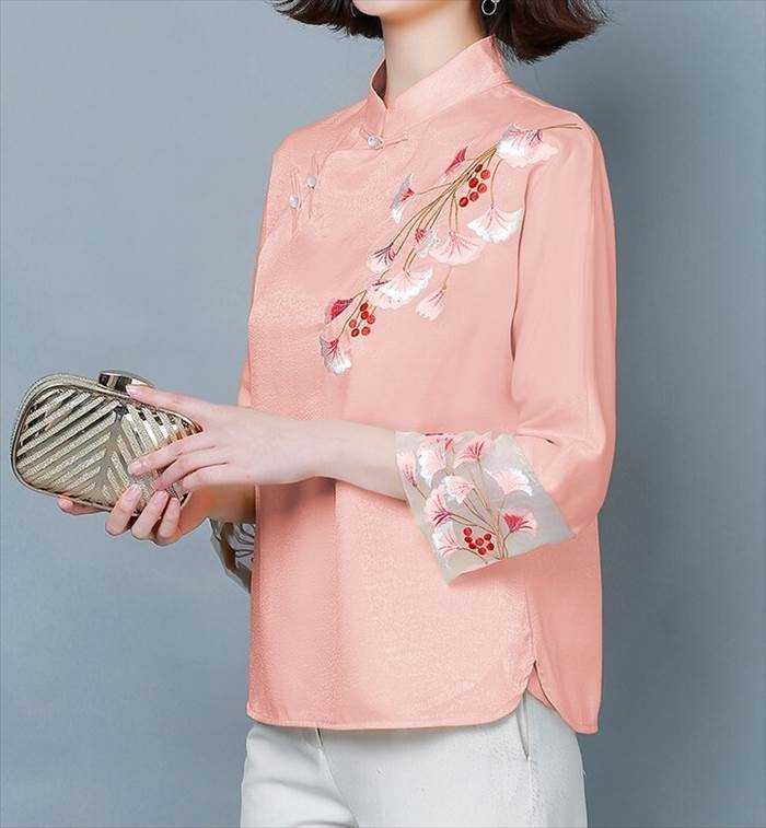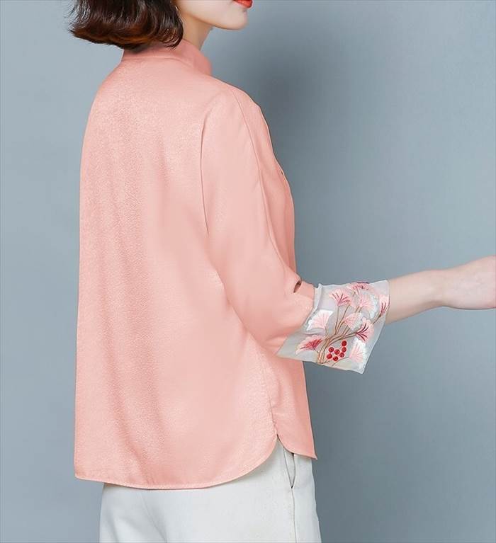 トップス レディース ブラウス シャツ チャイナ風 スタンドカラー ゴージャス 刺繍 7分袖 個性的 存在感 フェミニン ゆったり オーバーサイズ 体型カバー 着痩せ 薄手 ルーズ 大人可愛い かわいい カジュアル フェミニン ガーリー 韓国 キュート おしゃれ お洒落 春 夏 秋 冬 オールシーズン お出かけ お呼ばれ 通勤 オフィス デート 女子会 普段着 普段使い 着回し デイリー オフィスカジュアル 大きサイズ ラージサイズ インスタ映え M L XL 2XL 3XL 4XL ピンク イエロー