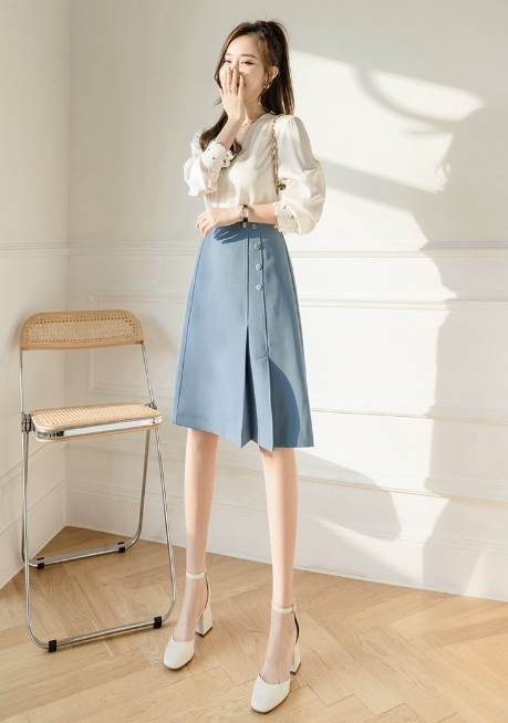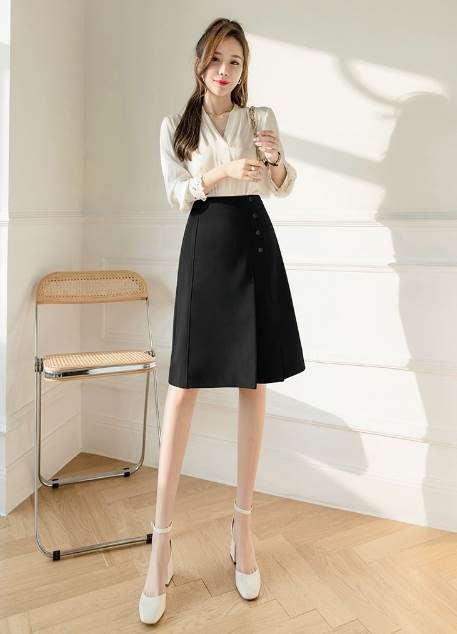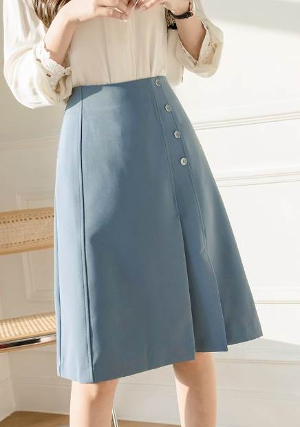 Aラインのシルエットが女性らしいスタイルに見せてくれるミディアムスカートです。普段使いはもちろん、オフィスシーンにもお勧めの1枚です。