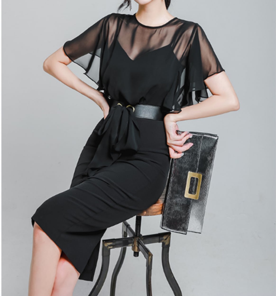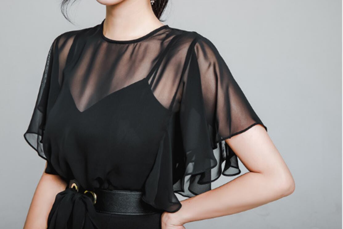 シフォンブラウス シアーブラウス ボリューム袖