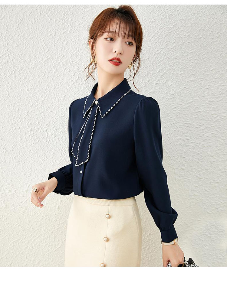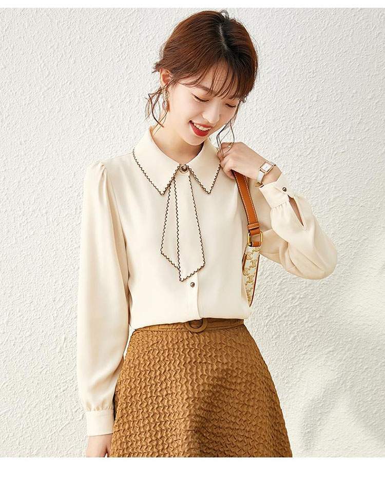 シアースリーブ ドッキングシャツ ボウタイシャツブラウス