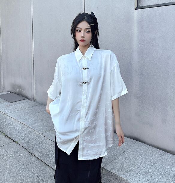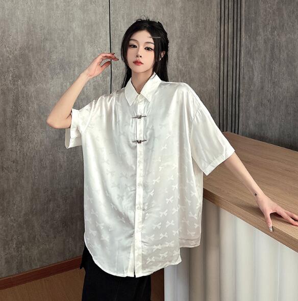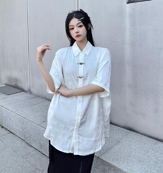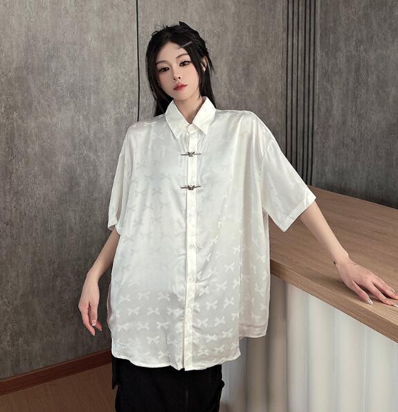シアースリーブ ドッキングシャツ ボウタイシャツブラウス