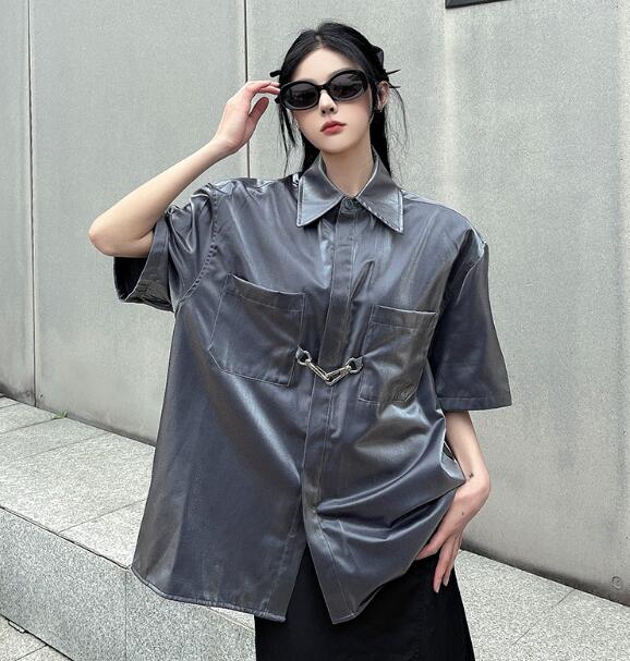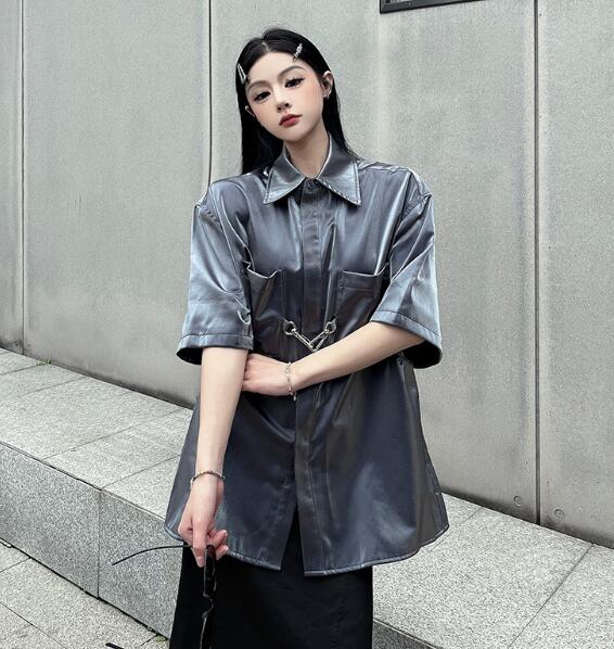 シアースリーブ ドッキングシャツ ボウタイシャツブラウス