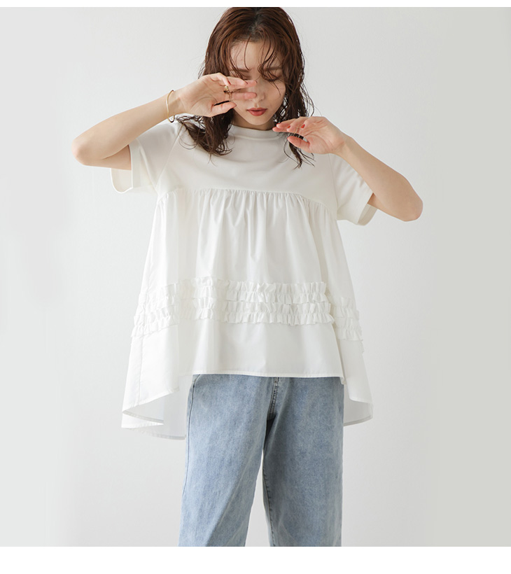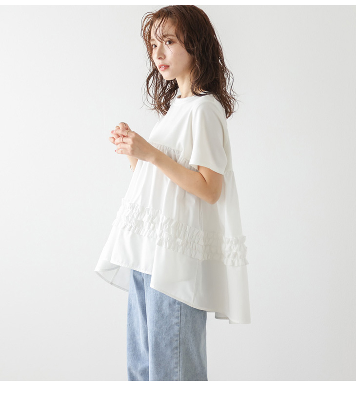 トップス フレアシルエット フリル 異
