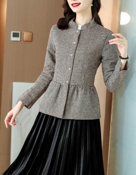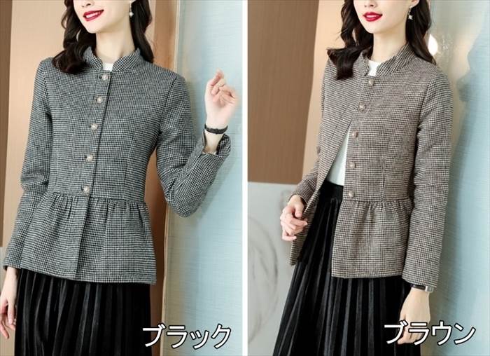 アウター レディース ジャケット 上着 長袖 スタンドカラー ペプラム ウエストマーク ハイウエスト 前開き 大人可愛い きれいめ シンプル カジュアル 大人 上品 おしゃれ お洒落 レトロ フェミニン 大人女子 こなれ感 ラフ マニッシュ エレガント モダン 存在感 抜け感 華奢見え 細見え M L XL 2XL 黒 ブラック 茶色 ブラウン チェック柄 格子柄 秋 冬 OL 通勤 デート お出かけ 女子会 休日 リゾート 旅行 着回し 普段使い 楽ちん あったか モテ 体型カバー 定番 送料無料