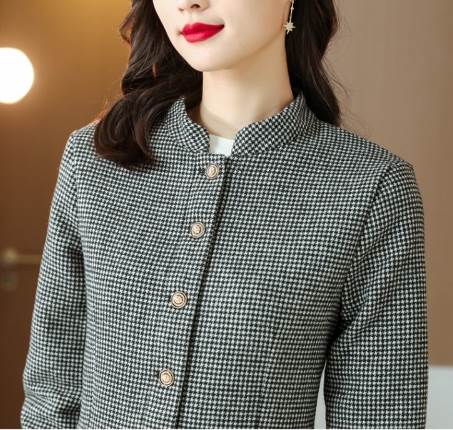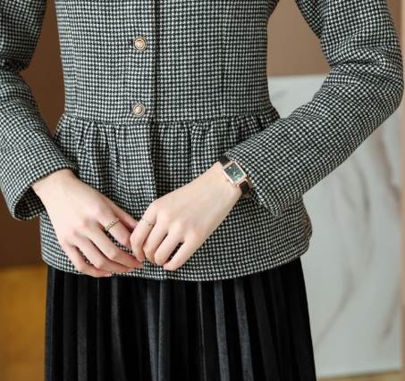 人気のチェック柄にスタンドカラーのきちんと感がお洒落なペプラムジャケットです。カジュアルになりすぎないデザインで、女性らしいフェミニンな雰囲気に仕上げてくれます。