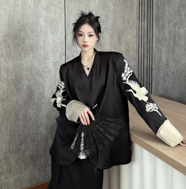 モード系長袖鶴チャイナ風 ビッグシルエ
