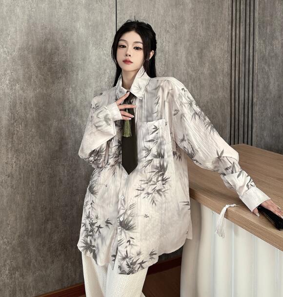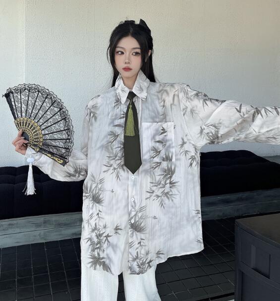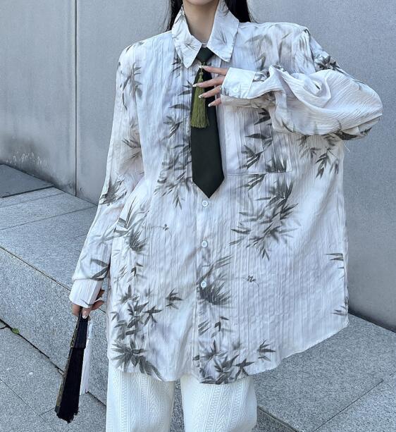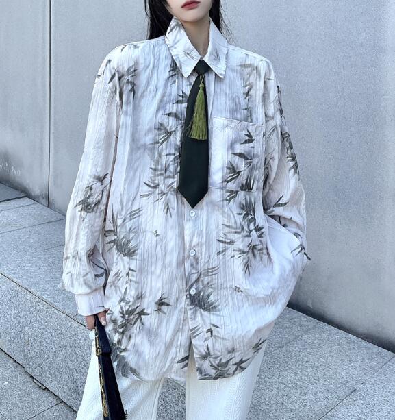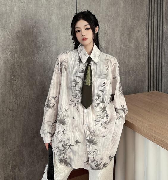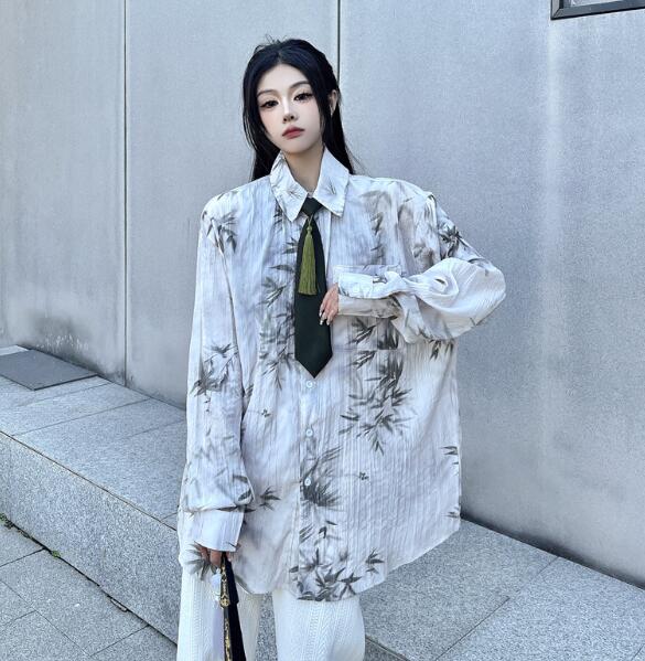 モード系ネクタイ柄シャツ 総柄 チャイ