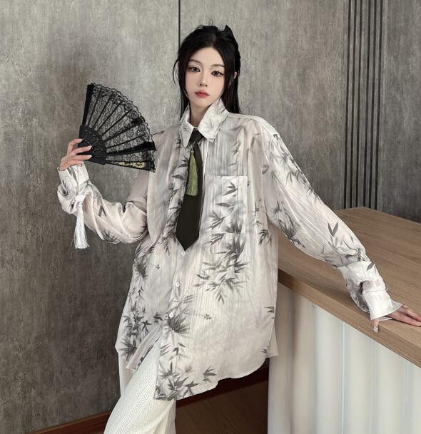シアースリーブ ドッキングシャツ ボウタイシャツブラウス
