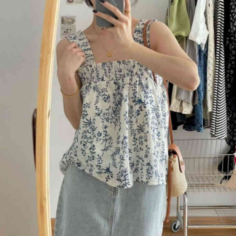 ノースリーブ ブラウス 肩紐 フリル
