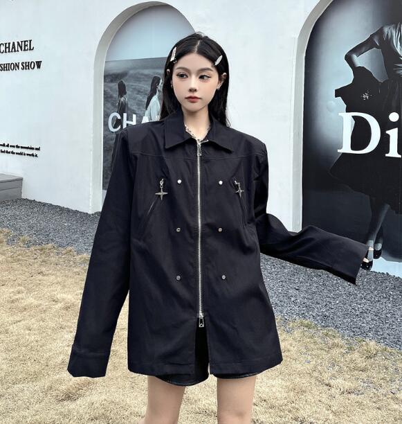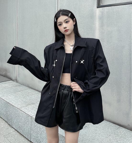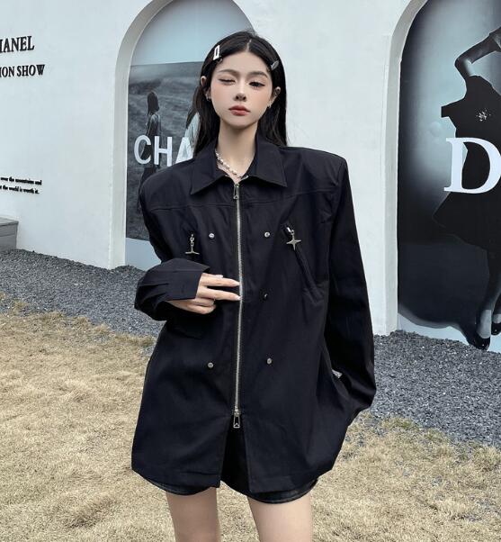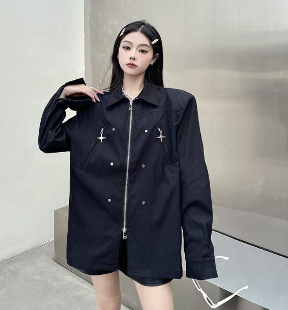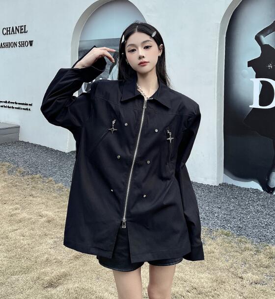 モード系長袖トップスシャツブラウス ビ