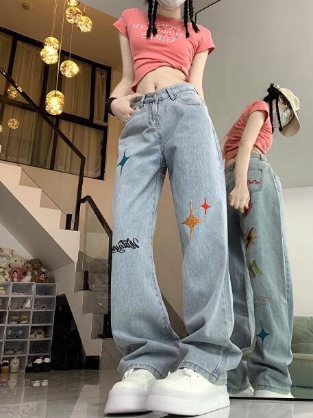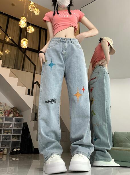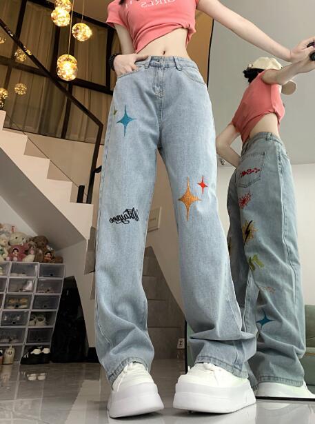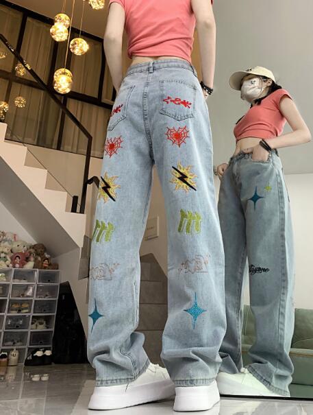 刺繍デニムズボンボトムスパンツジーンズ