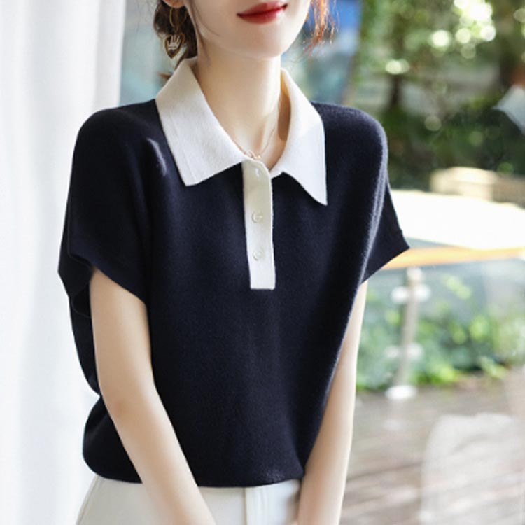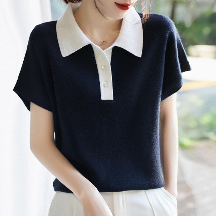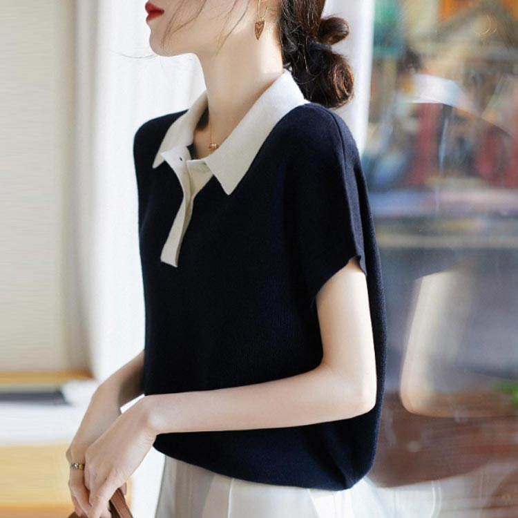 キーネック サマーニット 半袖 トップ
