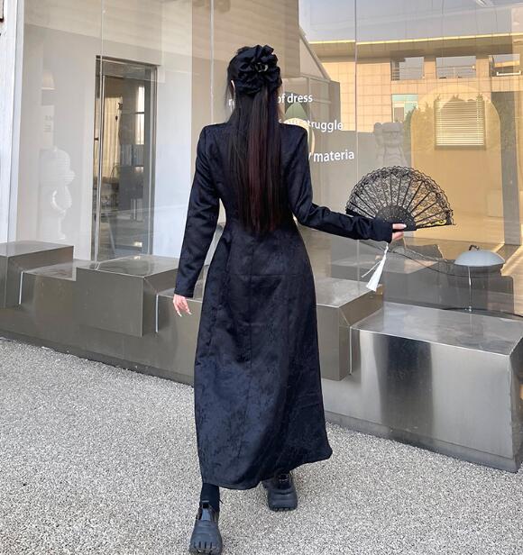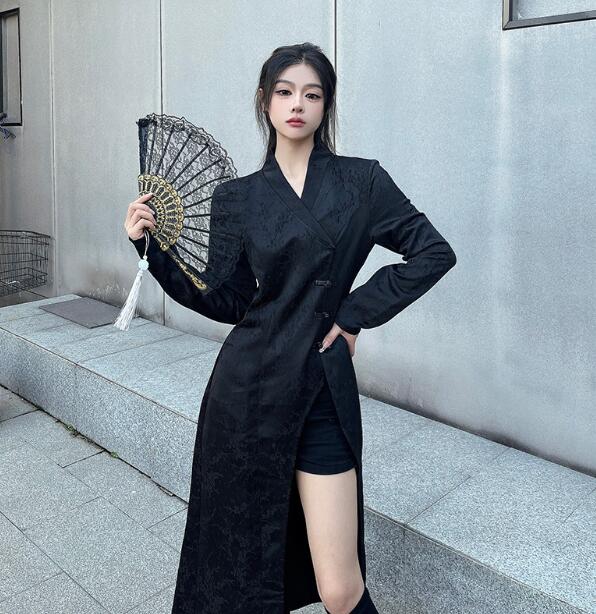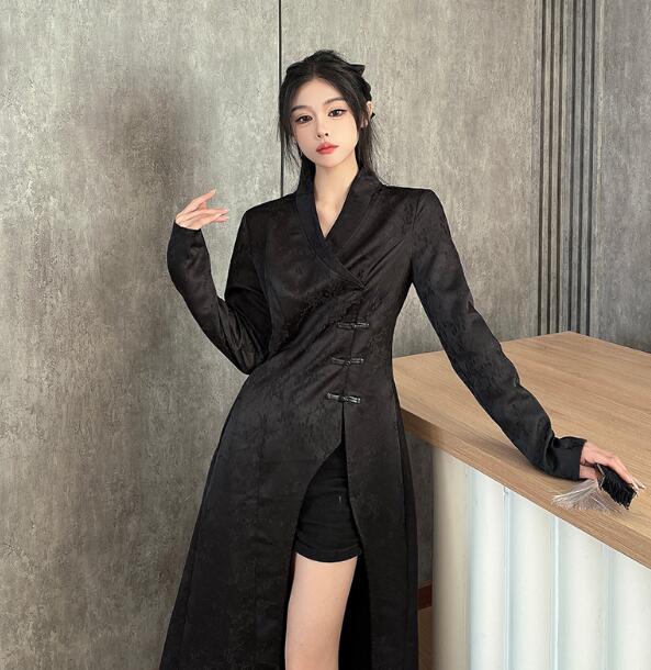 モード系チャイナ風長袖トップスシャツブ