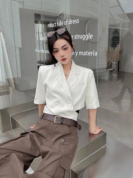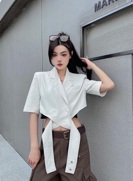 シアースリーブ ドッキングシャツ ボウタイシャツブラウス