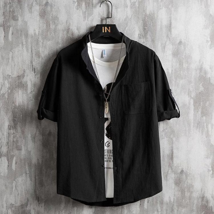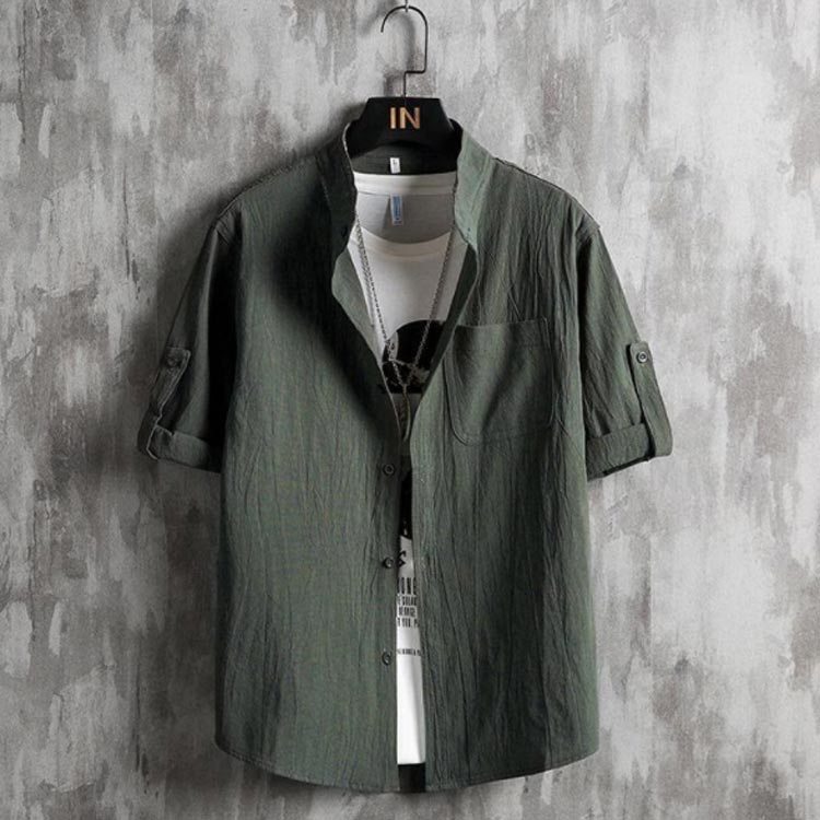 メンズシャツ 綿麻シャツ リネン混 麻