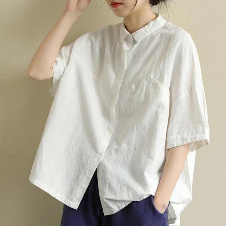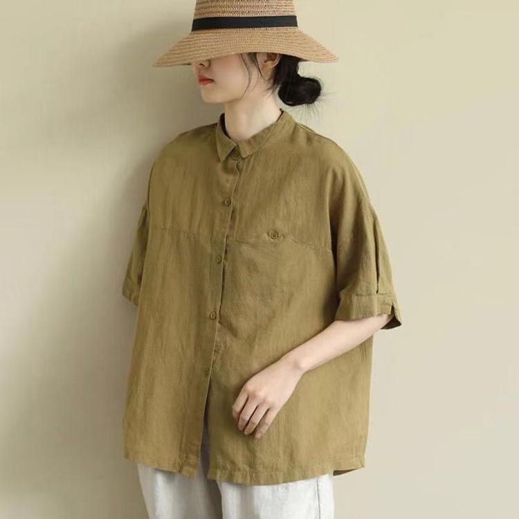 ナチュラル 涼しい ブラウス 綿麻 シ
