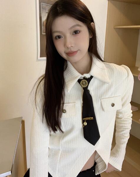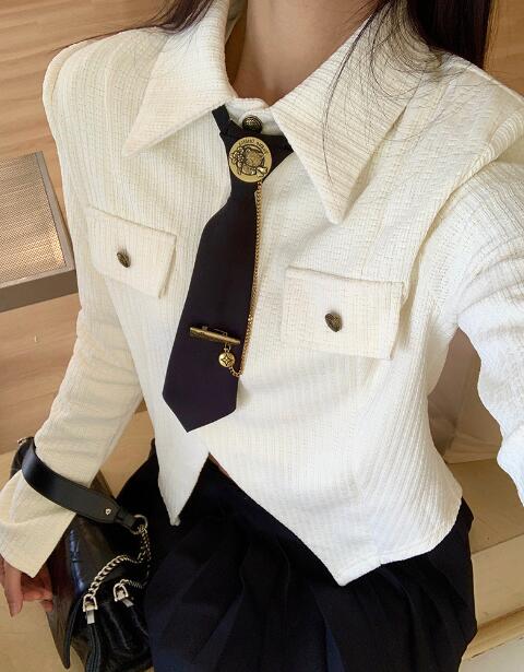 シアースリーブ ドッキングシャツ ボウタイシャツブラウス