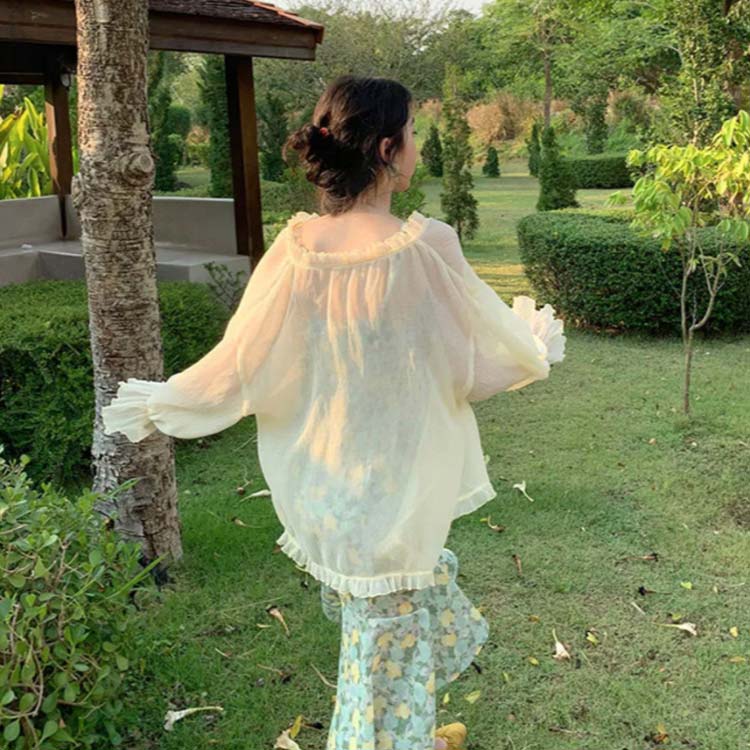 シフォンブラウス シアーブラウス ボリューム袖