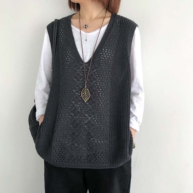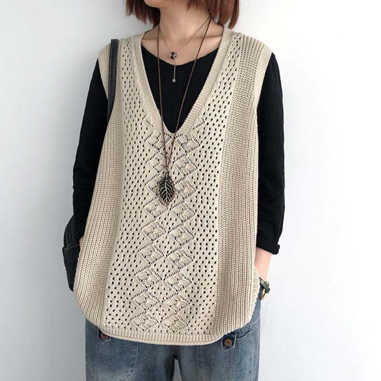 プルオーバー ベスト 透かし編み レデ