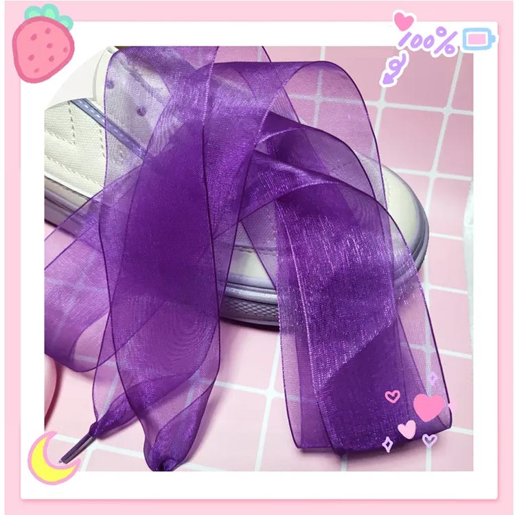 透け感 靴紐 リボン 幅広 幅広 靴