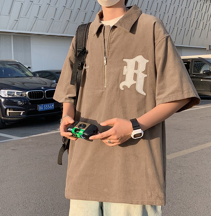 ハーフジップトップス3色ロゴ半袖カット